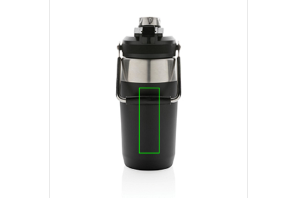 Die ultimative Edelstahlflasche für die Vielseitigkeit unterwegs. Der Deckel hat eine Doppelfunktion, die sowohl einen Flip-Top-Strohhalm als auch einen Schraubverschluss hat, sodass Sie wählen können, wie Sie aus der Flasche trinken möchten! Zudem hat die Flasche einen Griff zum einfachen Tragen. Doppelwandiger, vakuumisolierter Stainless-Steel hält Getränke bis zu 5 Stunden heiß oder bis zu 15 Stunden kalt. Die Pulverbeschichtung erzeugt ein äußerst strapazierfähiges Äußeres. Kapazität 500ml. BPA-frei.