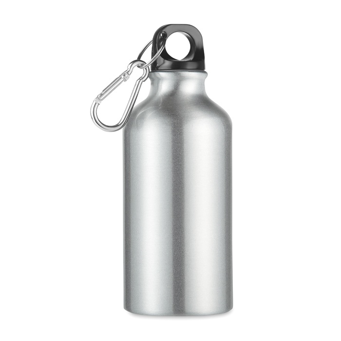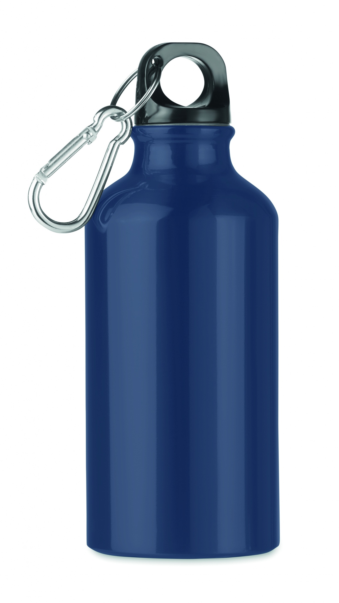Einwandige Trinkflasche aus Aluminium mit Karabiner. Füllmenge: 400 ml. Der Karabiner ist NICHT als Sicherung beim Klettern geeignet. Auslaufsicher.