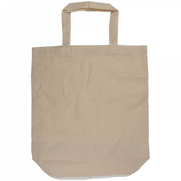Naturfarbene, faltbare und umweltfreundliche Baumwolltasche (120g/m²) mit Tragegriff. Ihr Logo drucken wir einseitig auf.