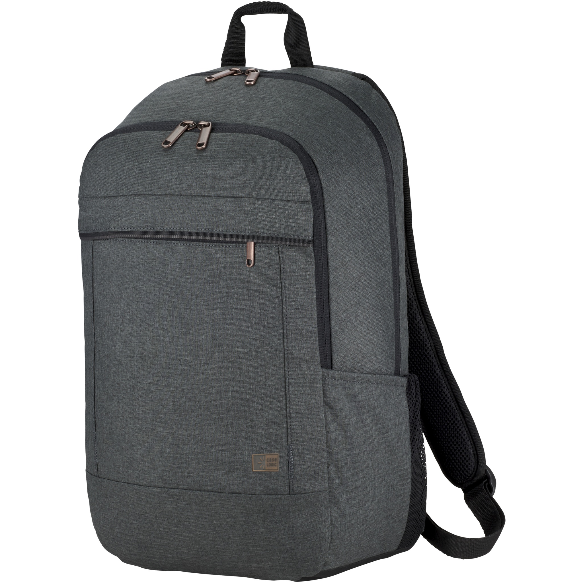 Ein professioneller Laptop-Rucksack, perfekt für alle, die Komfort und Stil in Einklang bringen möchten. Das geräumige Hauptfach verfügt über eine dick gepolsterte Ablage für einen Laptop bis 15 Zoll und eine spezielle Einschubtasche für ein 10,5-Zoll-Tablet. Es gibt ein zusätzliches Fach für die Aufbewahrung eines Netzteils sowie eine Schnellzugriffsfronttasche für kleine Elektronikgeräte. Zwei Seitentaschen ermöglichen den einfachen Zugang zu Wasserflaschen oder anderen Gegenständen. Der Rückengurt befestigt die Tasche sicher an den meisten Rollgepäckstücken. Material in Melange-Farben, Kontaktpunkte aus Kupfer und Zierdetails sorgen für einen modernen, professionellen Look.