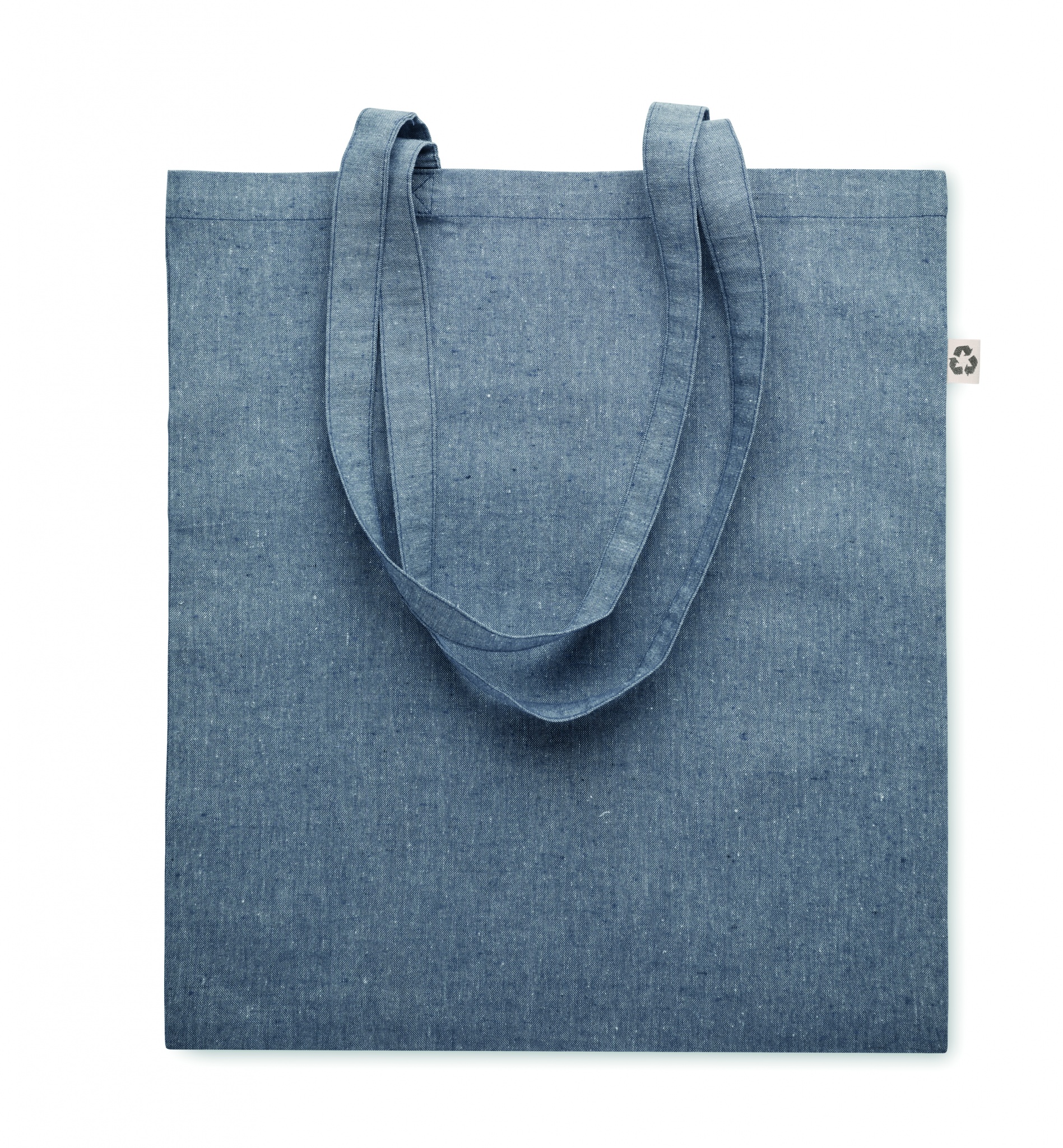 Einkaufstasche aus recycelter Baumwolle (80% recycelte Baumwolle, 20% Baumwolle) mit langen Tragegriffen. 140 g/m².