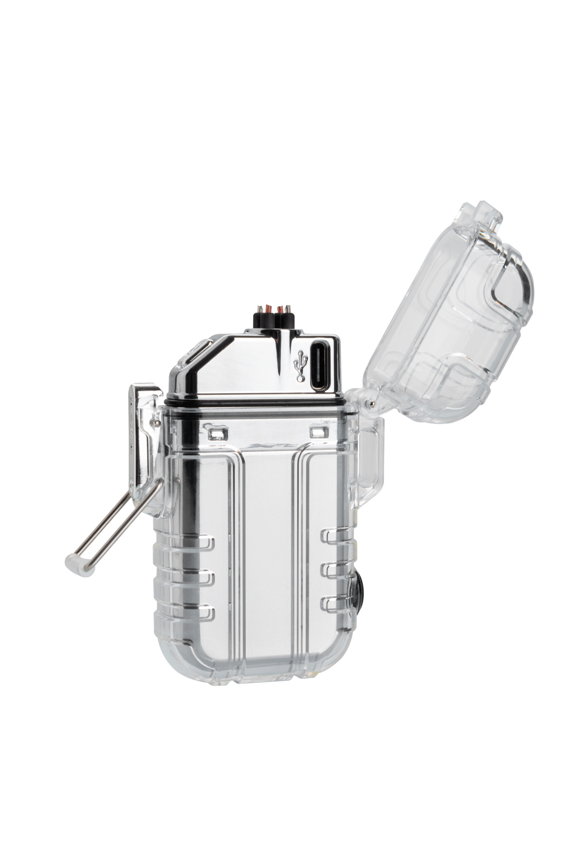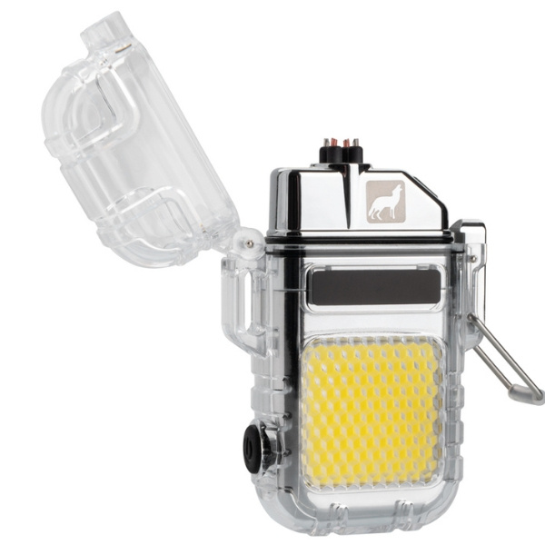 Elektrisches wiederaufladbares Feuerzeug mit einer COB-Taschenlampe. Das Feuerzeug funktioniert auf der Basis einer elektrischen Entladung anstelle einer Flamme. Die Taschenlampe verfügt über drei verschiedene Leuchtmodi. Sie wird über ein im Lieferumfang enthaltenes USB-Kabel aufgeladen. Die Ladezeit des Feuerzeugs beträgt 1–2 Stunden und ein volles Feuerzeug hält ungefähr eine Woche oder nach 100–200 Funken.