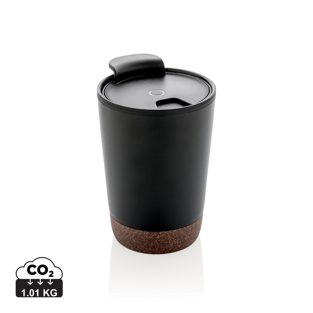 GRS rPP Edelstahl-Kaffeebecher mit Kork, Schwarz
