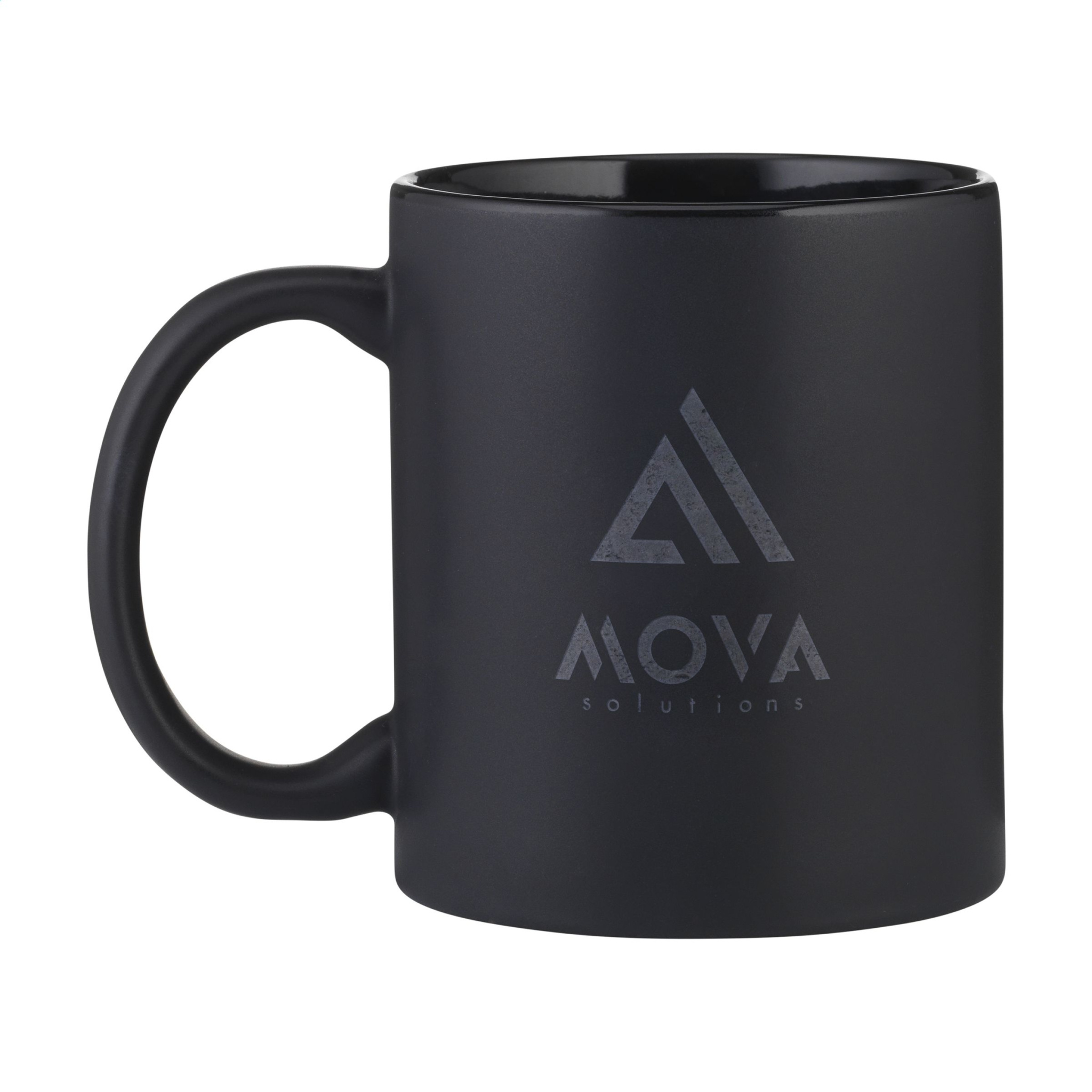 Hochwertiger Keramikbecher mit mattschwarzer Außenseite und glänzend schwarzer Innenseite. Spülmaschinenfest. Der Aufdruck ist spülmaschinengetestet und zertifiziert: EN 12875-2. Fassungsvermögen 350 ml.