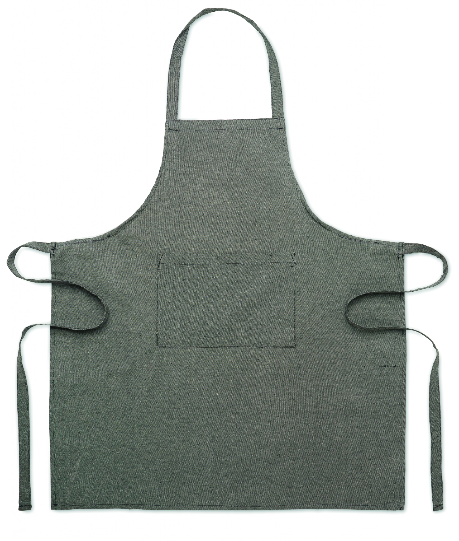 Küchenschürze mit verstellbarem Nackenband und 1 Fronttasche. Recycelte Baumwolle 220 g/m². (80 % recycelte Baumwolle, 20 % Baumwolle)