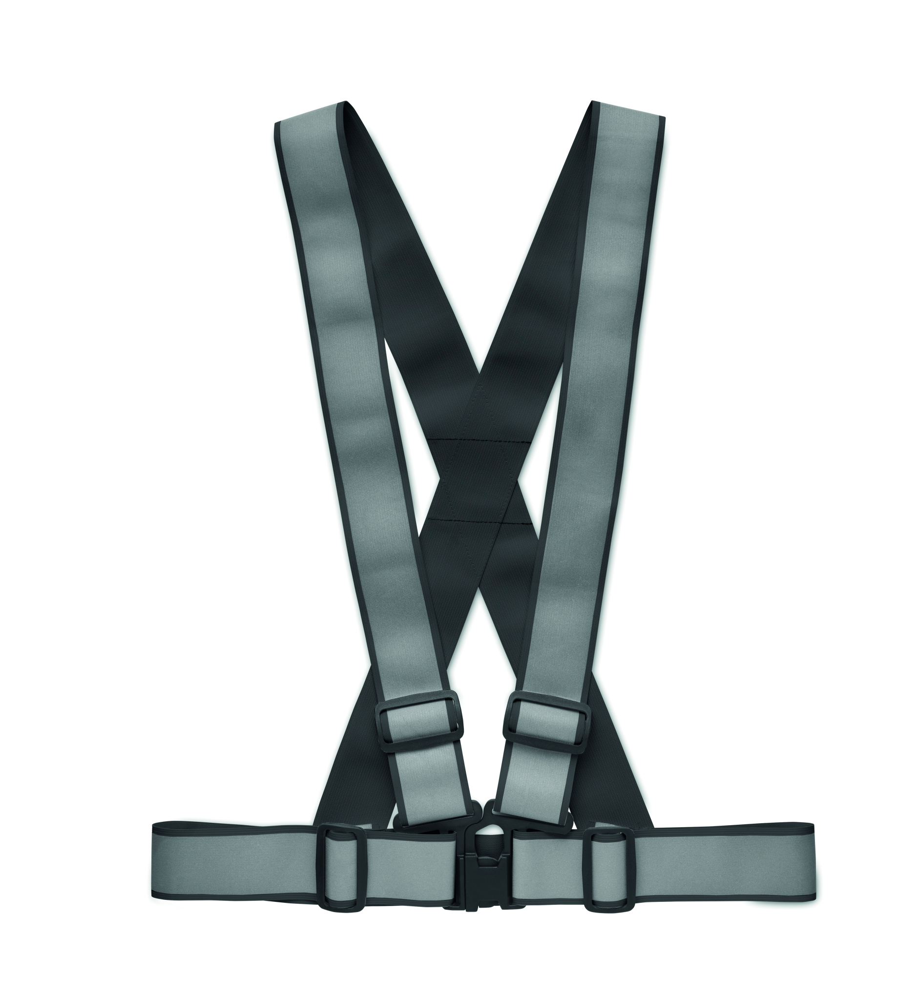Verstellbare, um 360° reflektierende Gürtelweste mit silbernen Reflektoren für gute Sichtbarkeit. EN17353: 202 TYP-B3.