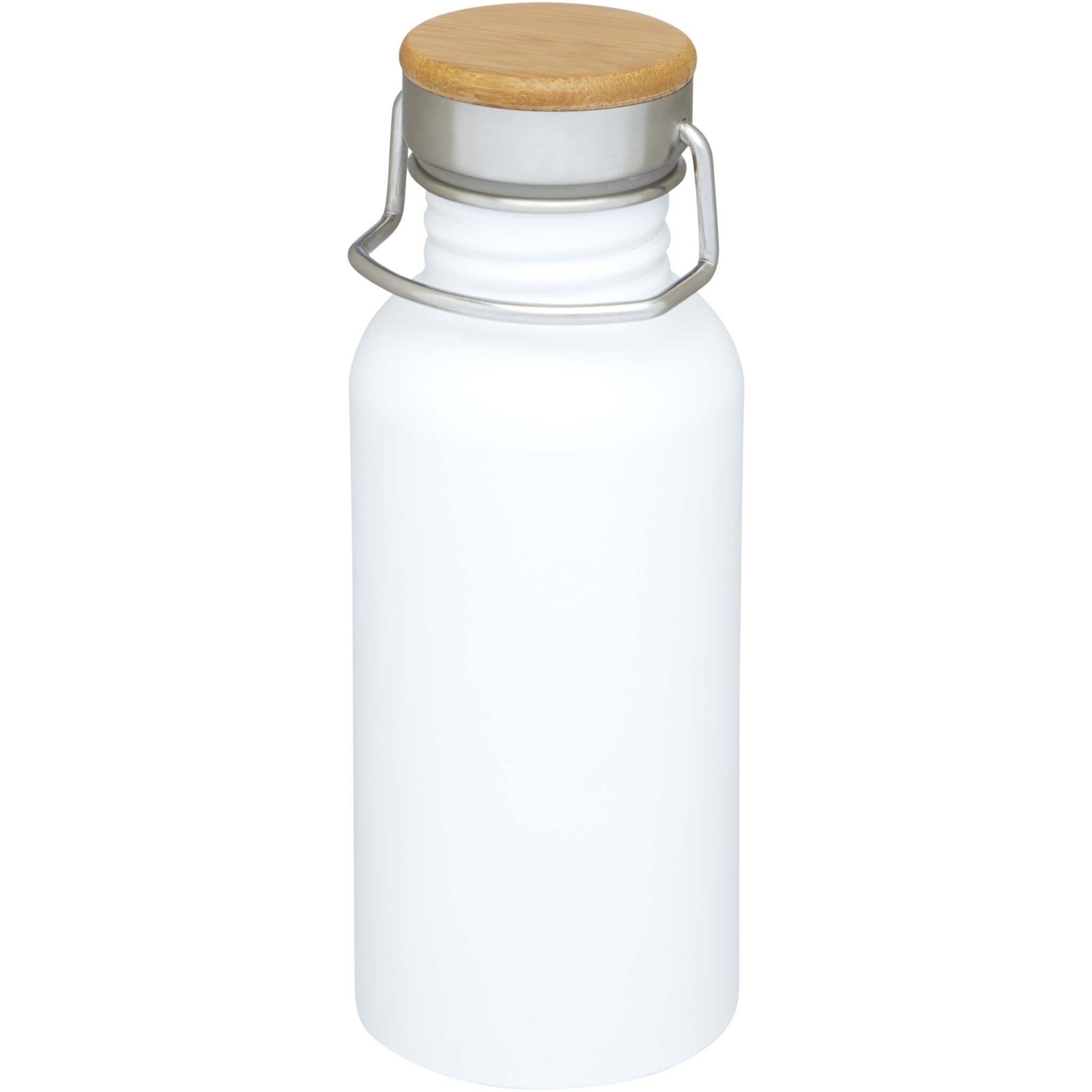 Einwandige Edelstahlflasche mit Schraubdeckel. Der Deckel verfügt über ein Bambusoberteil sowie einen Griff zum einfachen Tragen. Das Fassungsvermögen beträgt 550 ml. Verpackt in einer Avenue-Geschenkschachtel.