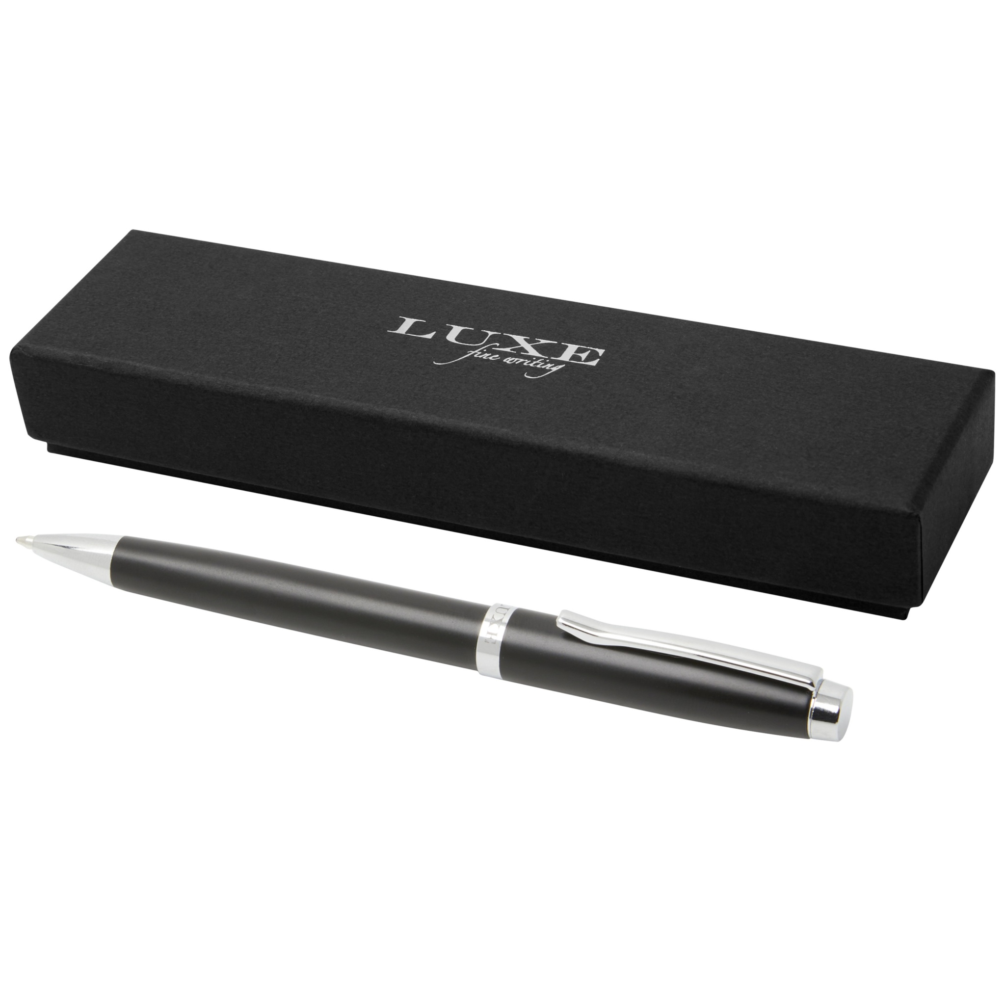 Eleganter Kugelschreibe rin exklusivem Design, erhältlich in drei Farben. Inkl. schwarzer Ersatzmine und verpackt in einer „LUXE" Geschenkbox.