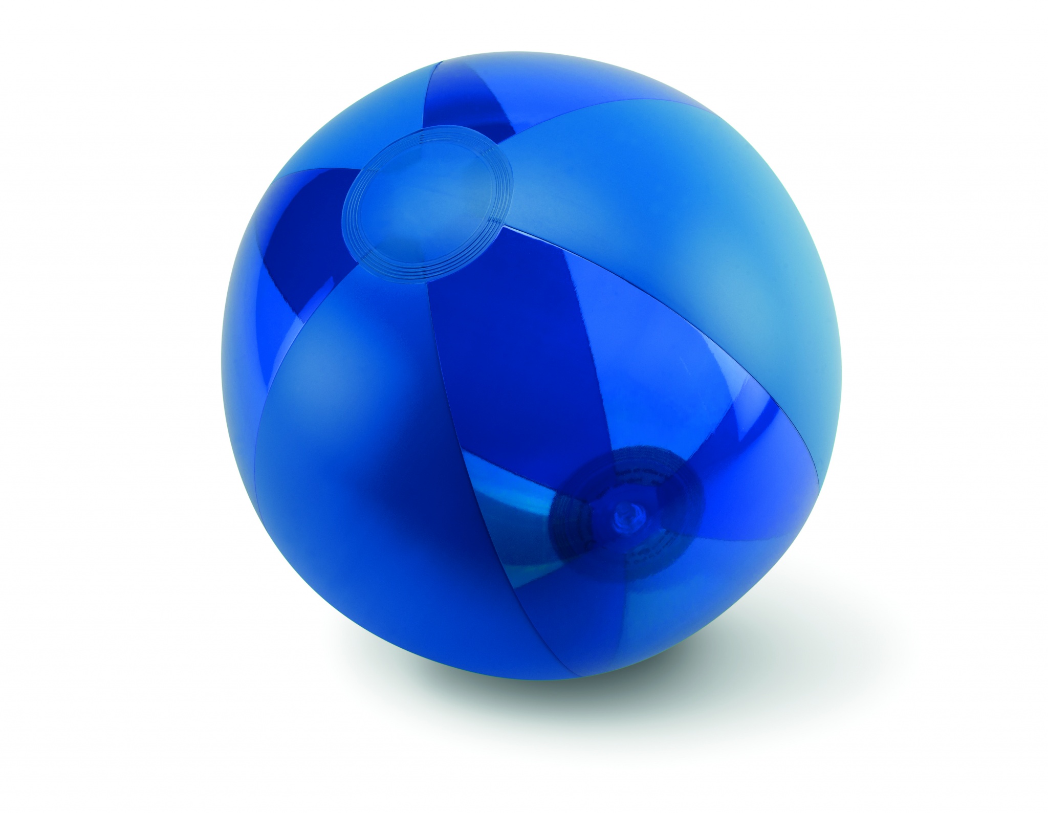 Aufblasbarer Wasserball. Kombination aus transparenten und durchgefärbten Segmenten. Aufgeblasen: Ø24cm