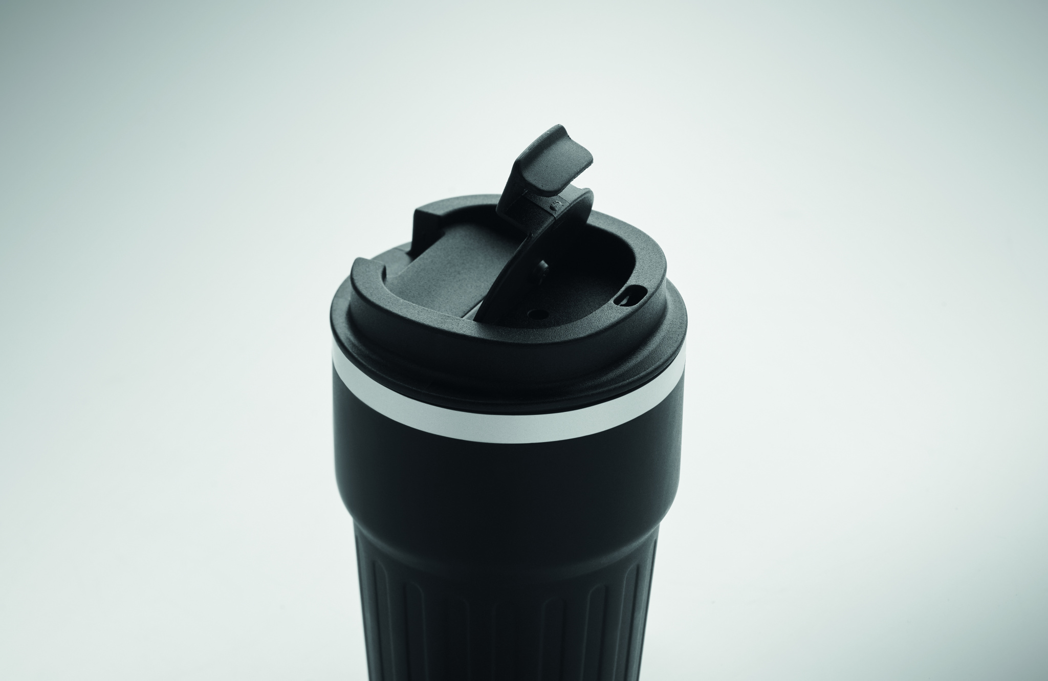 A5 notebook, recycled aluminium ballpen, and 350 ml double wall recycled stainless steel tumbler with PP sip lid and strap in gift box.