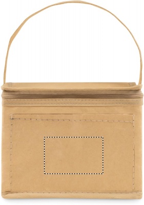 Paper woven cooler bag for 6 cans. It has a handle and a front pocket. Isolation material: PE foam layer. Capacity 3L.