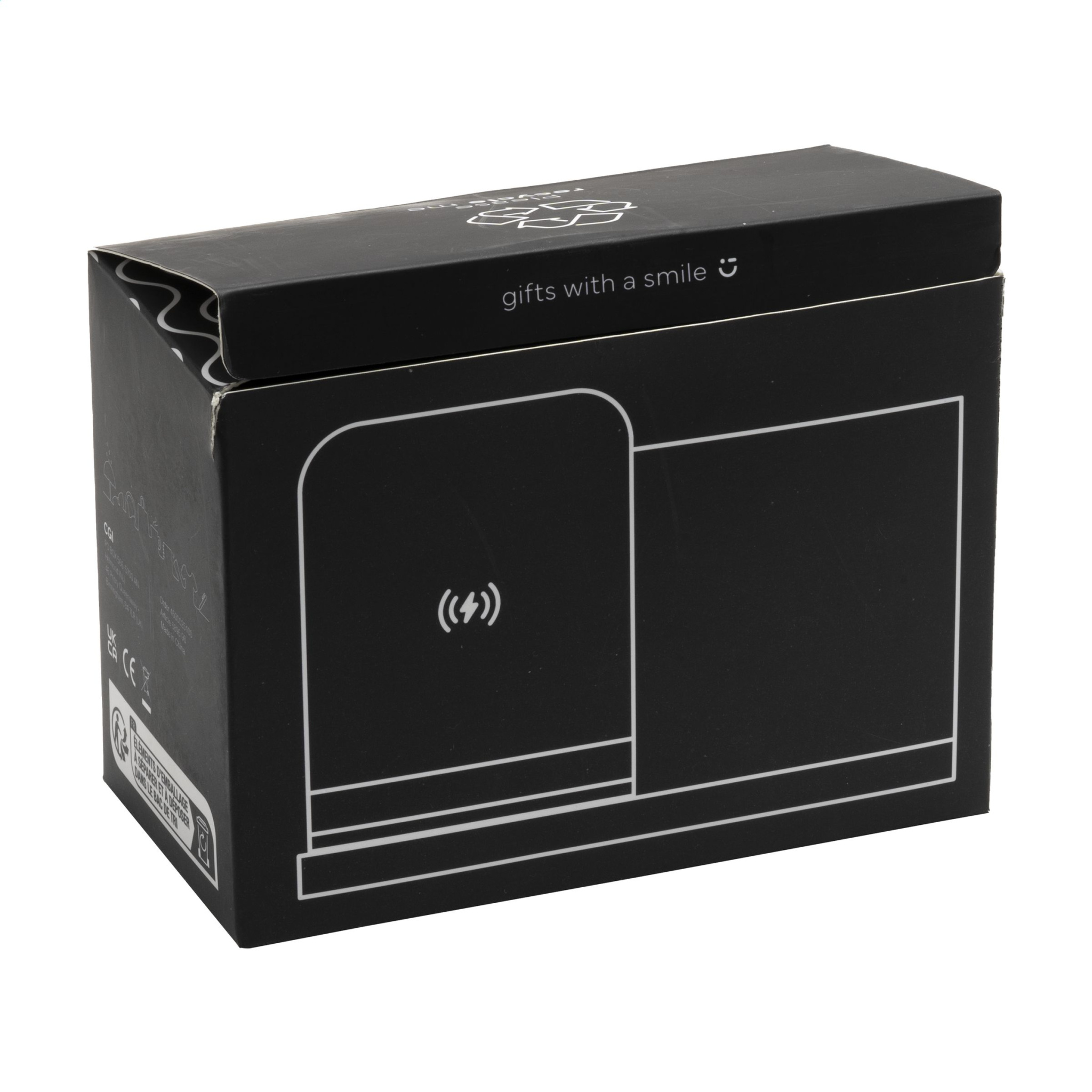 15W wireless charging stand and pen holder in one. This desk accessory is made from high-quality, natural FSC 100% certified bamboo. The 15W charger is ideal for charging mobile phones and is compatible with all mobile devices that support QI wireless charging (latest generations of Android and iPhone). Input: 9V/2A. Wireless output: 15W. Store pens and small items in the handy holder and keep your desk clear and organized. Includes PVC-free USB-A cable (TPE) with USB-C connector and user manual. Each item is supplied in an individual brown cardboard box.