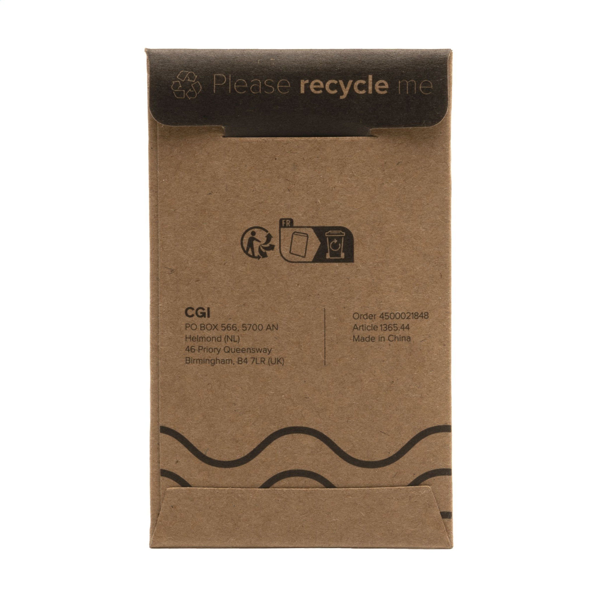 A rectangular, polished, metal keyring with bamboo wooden inlay and a sturdy keyring. Each item is supplied in an individual brown cardboard envelope.