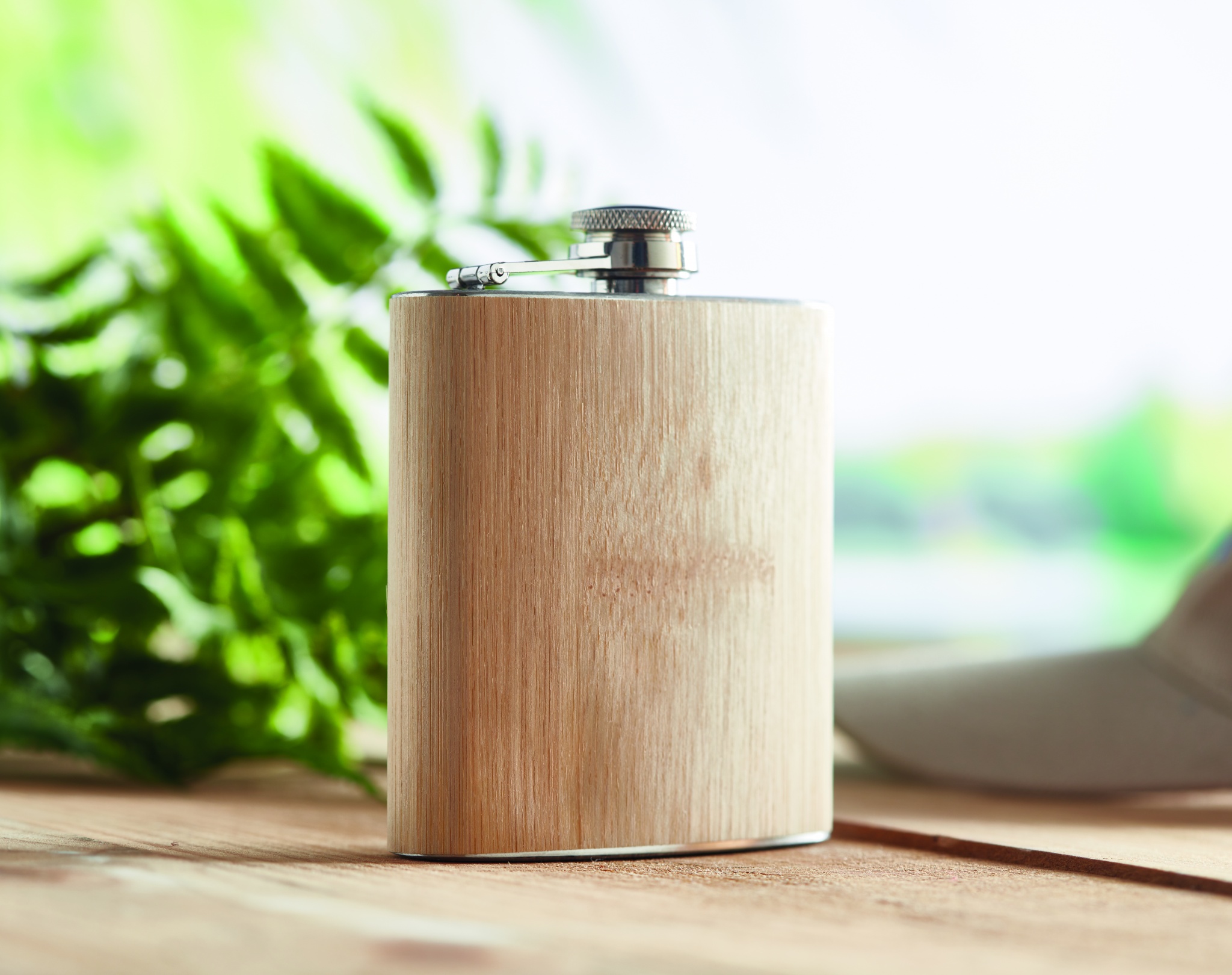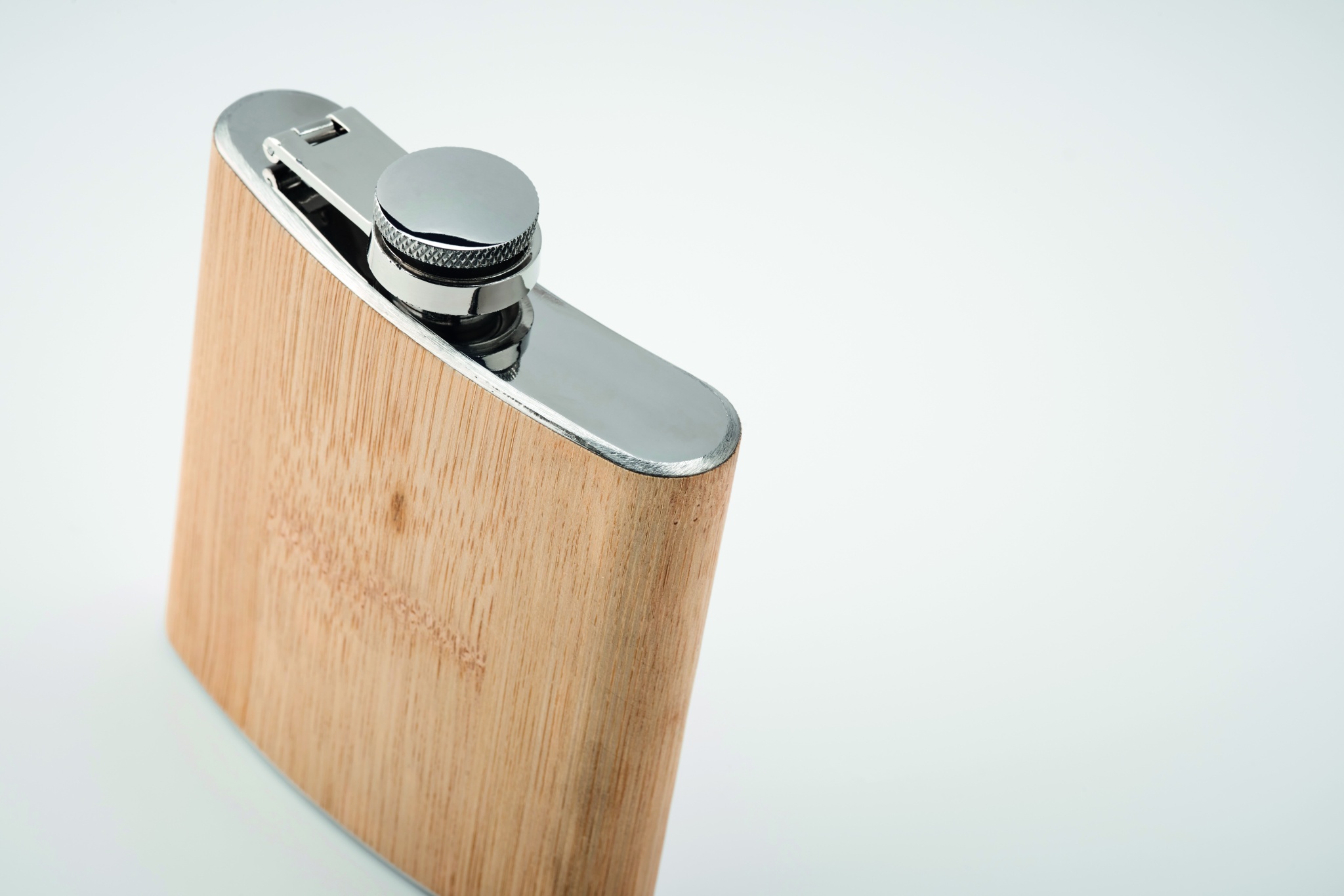 Slim hip flask. Bamboo finish. Capacity: 170 ml.