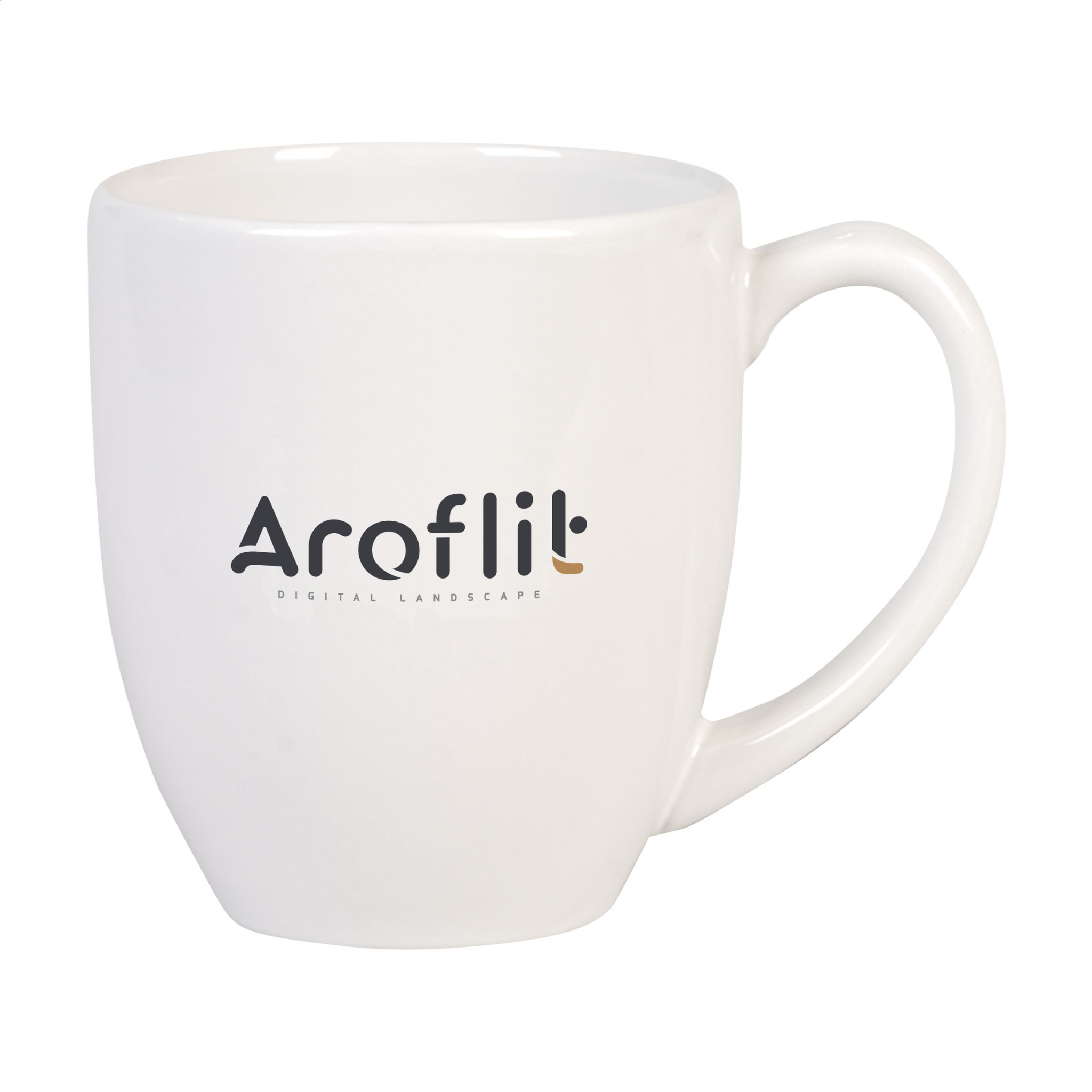 Extra large ceramic mug. Available in pure white or with an eye-catching coloured interior. Capacity 450 ml. Dishwasher safe. The imprint is dishwasher tested and certified: EN 12875-2.
