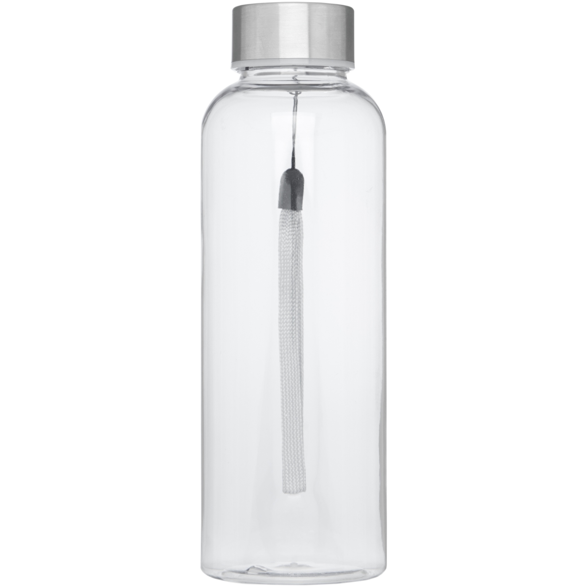 Single-walled water bottle in durable material with screw-on lid. Shatter, stain, and odour resistant. Lid features a strap for easy carrying. BPA free. Volume capacity is 500 ml.