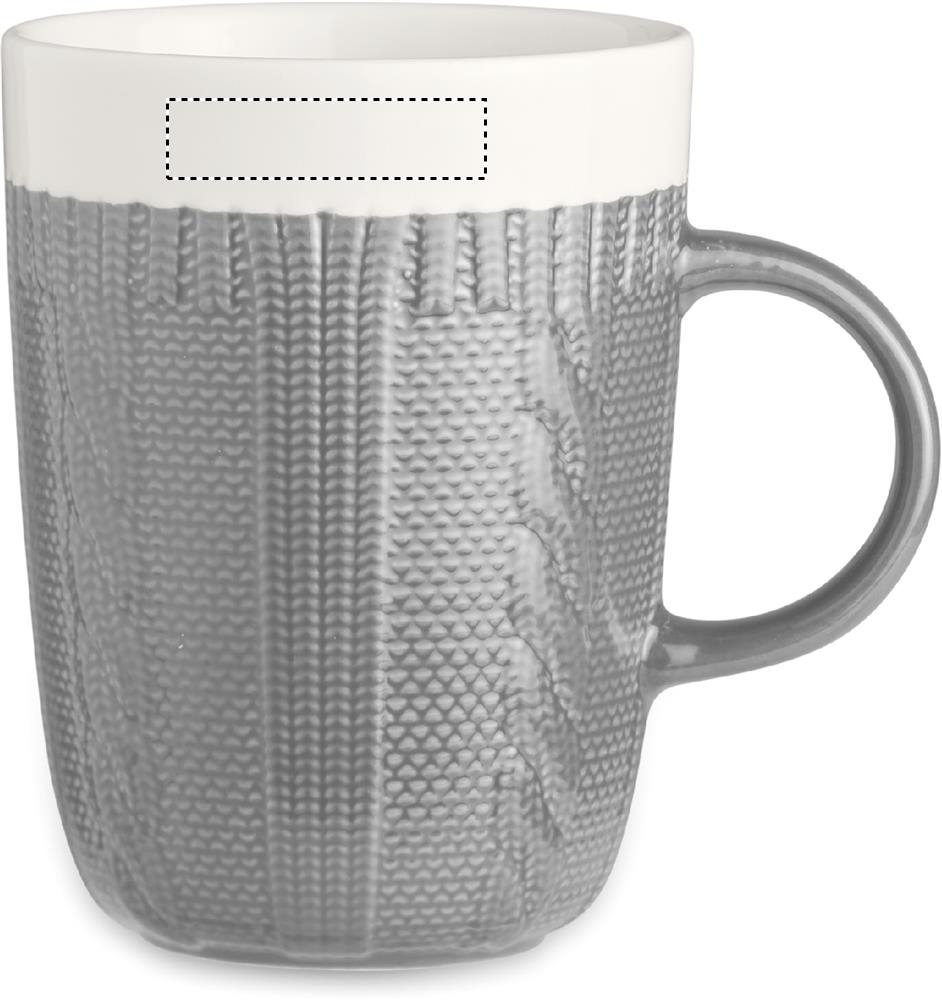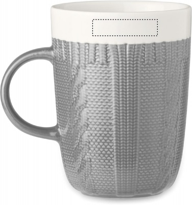 Knitted look design ceramic mug. Capacity: 310 ml. Presented in individual box.