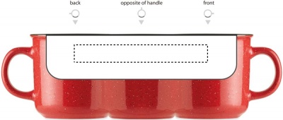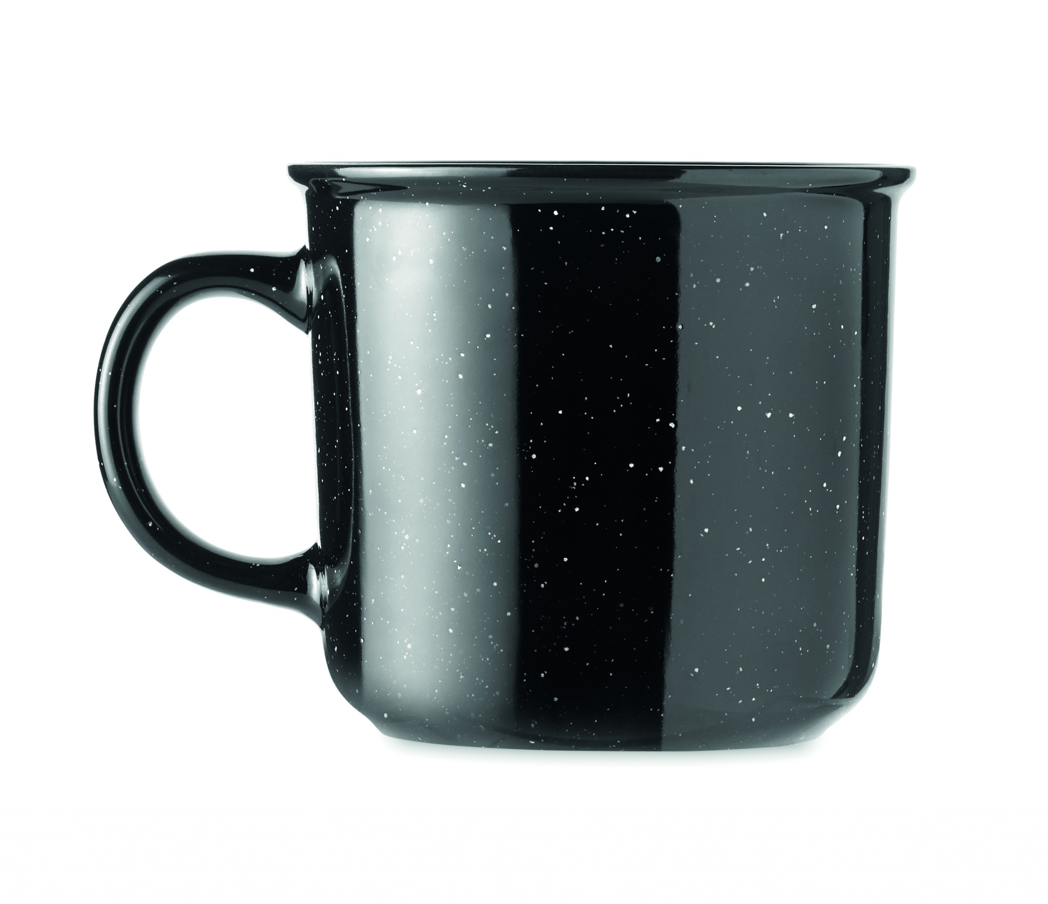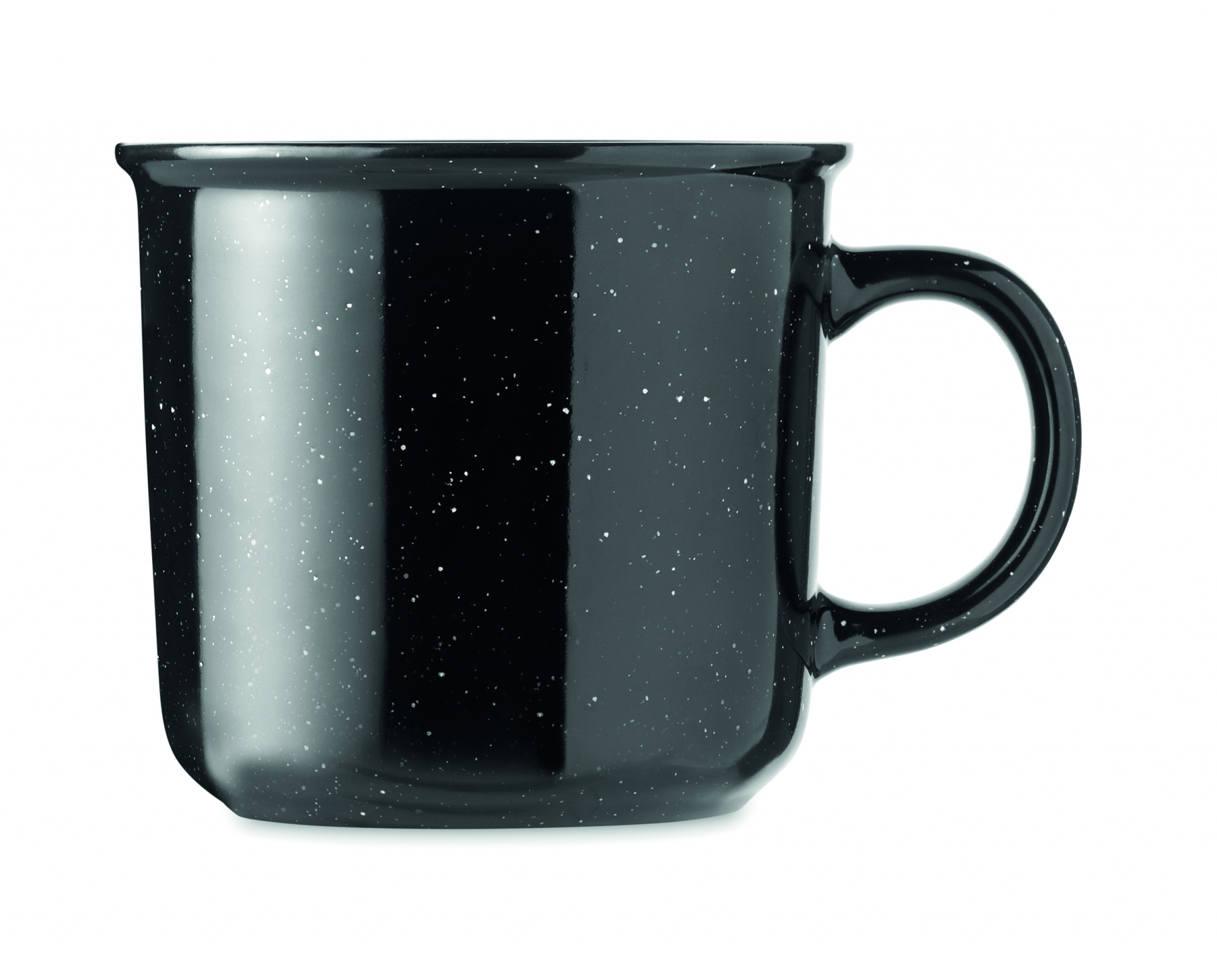 Large ceramic vintage style mug. Due to the spotted pattern, spots will be visible in the printed logo. Capacity: 400 ml.