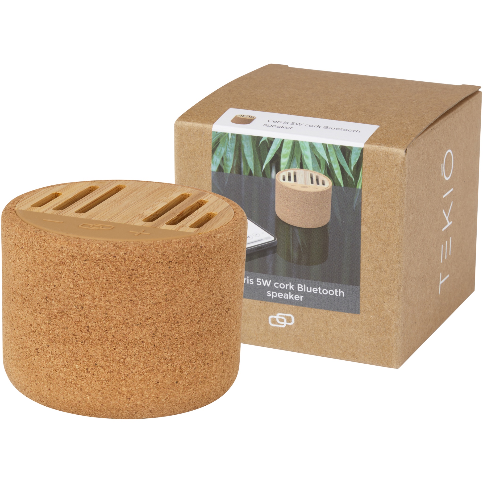 The Cerris 5W Bluetooth® speaker made from cork and bamboo is an acoustic natural treasure! The speaker body and grill are made from real cork and bamboo. With a 5W output this compact speaker provides an excellent sound and even gives the option to answer calls while playing music from a phone. The built-in 900 mAh battery allows up to 3 hours of usage at maximum volume on a single charge. Charging time from 0% to 100% is 2 hours. Bluetooth® 5.1 working range is up to 10 meters. 30 cm Type-C charging cable is included. Delivered in a premium kraft box with a colourful sticker. Since cork and bamboo are natural materials, there might be slight variations in colour and size per item, which may affect the final printing outcome.
