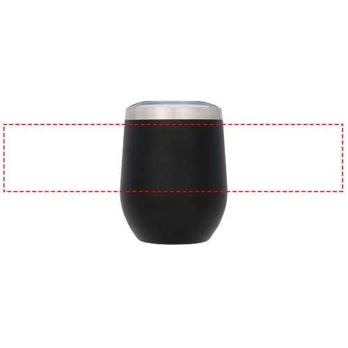 The Corzo copper vacuum insulated cup has a double-wall vacuum construction with copper insulation which means it keeps drinks hot for 6 hours and cold for 24 hours. The construction prevents condensation on the outside of the tumbler. Easy sipping, push-on lid. Features spray powder coating on the outer body. Wide opening for comfortable filling and pouring. Volume capacity is 350 ml. Presented in an Avenue gift box.