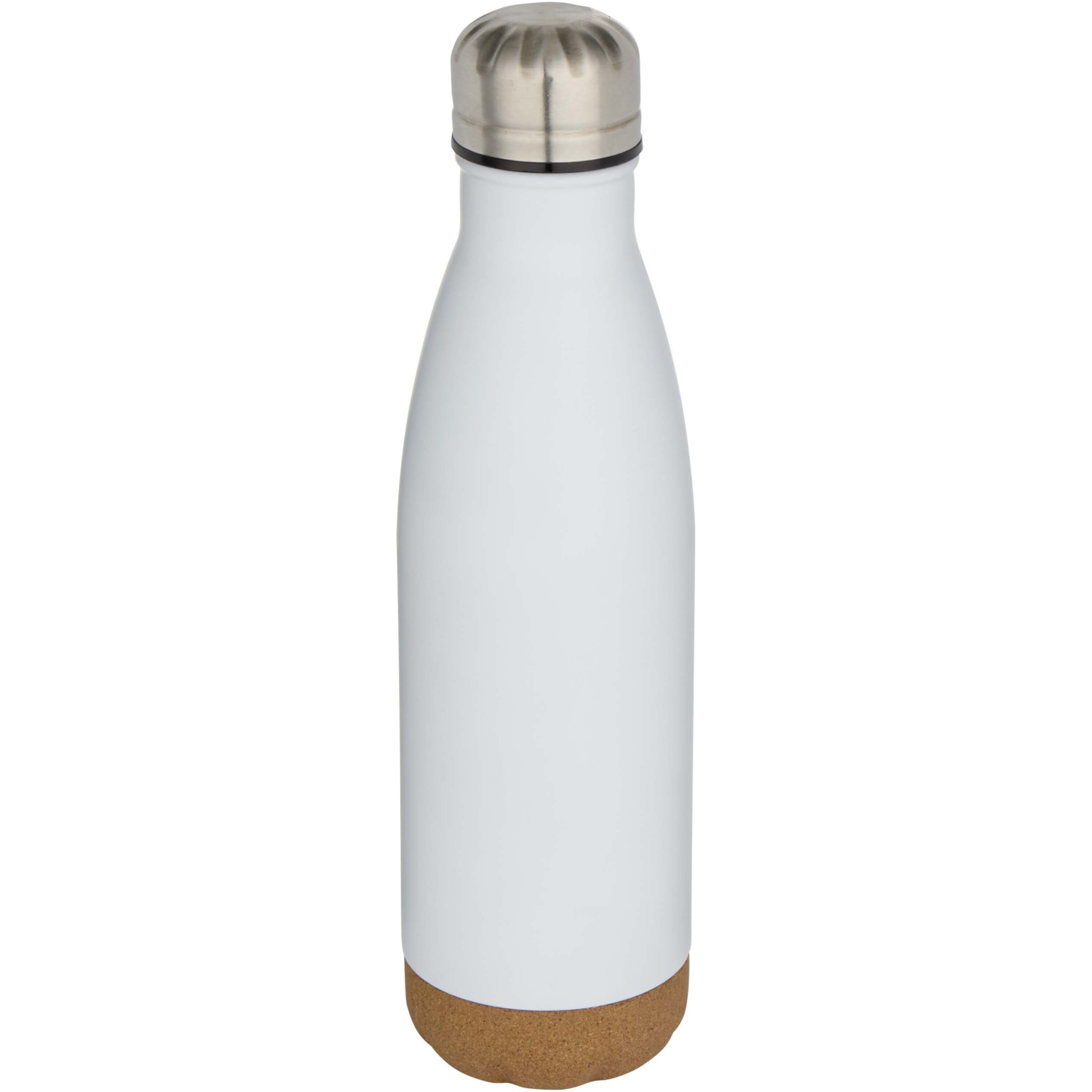 Cove 500 ml double wall vacuum insulated stainless steel water bottle with cork details, White