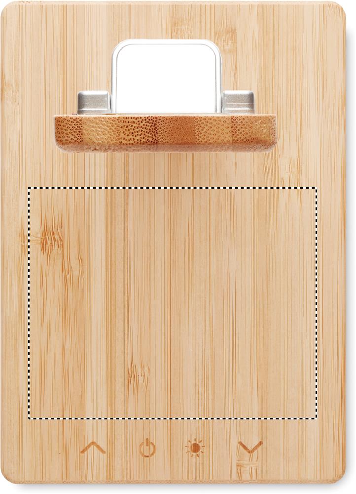 Foldable Bamboo desk lamp with 48 LED lights and 10W wireless charging and 2 USB hub. Touchscreen. Output: DC 9V/1.1A (10W) for quick charging. Compatible with latest Androids, iPhone® 8 and newer. Bamboo is a natural product, there may be slight variations in colour and size per item, which can affect the final decoration outcome.