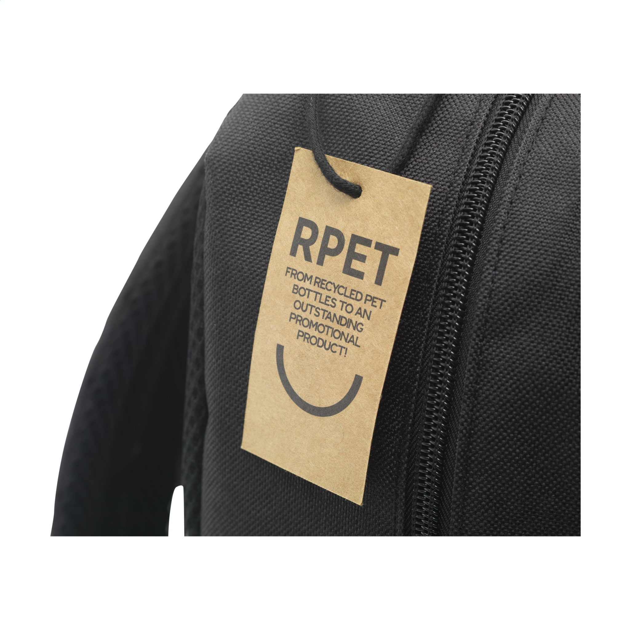 WoW! Backpack made from sturdy 600D RPET polyester. Equipped with a spacious compartment with sturdy zip and a foam protective compartment for safely transporting a laptop with a screen size of up to 15.6 inches. In addition, this backpack has an extra zip pocket on the front and a handy carrying loop. The adjustable shoulder straps and the rear of the backpack are foam padded for extra comfort. The backpack is also finished with mesh fabric. GRS-certified. Total recycled material: 98%. Capacity approx.15 litres.
