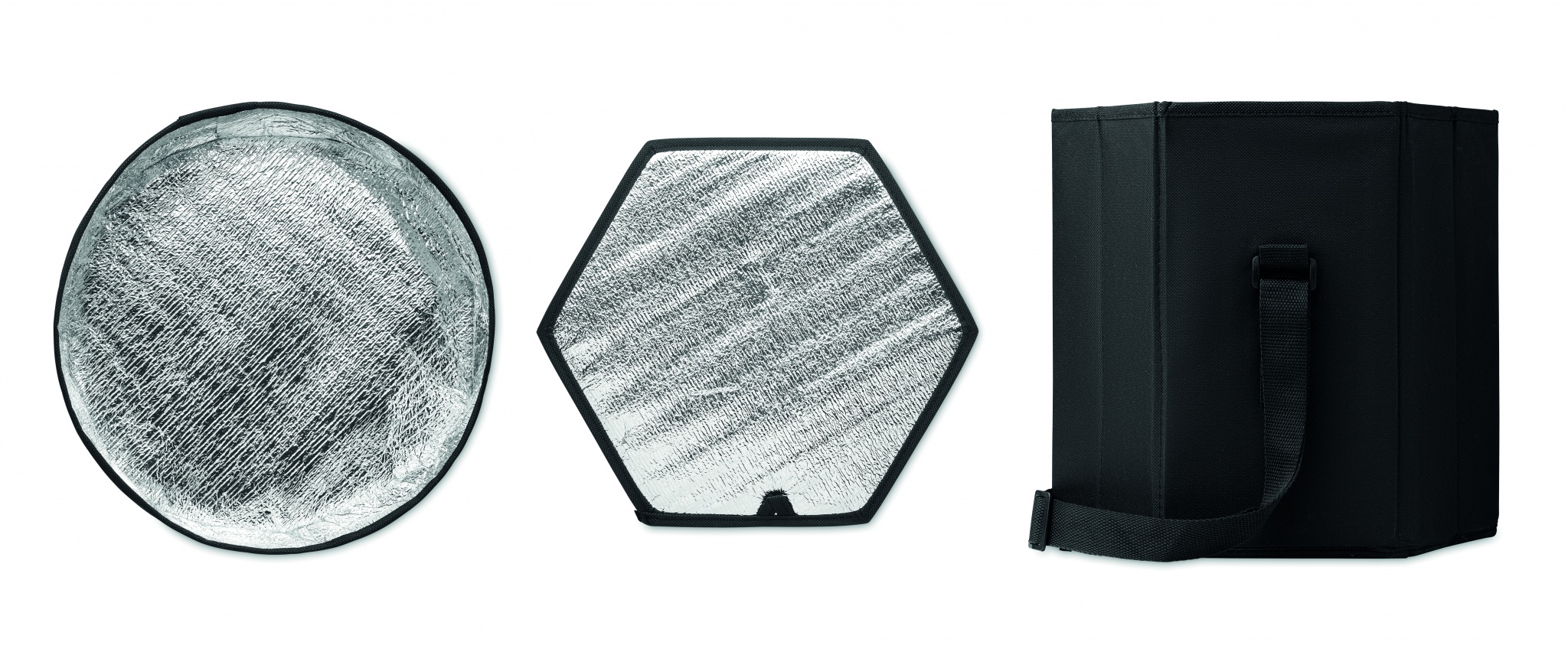 600D polyester foldable seat or table with insulated cooler bag with aluminium foil and carrying strap. Maximum weight 80 kg.