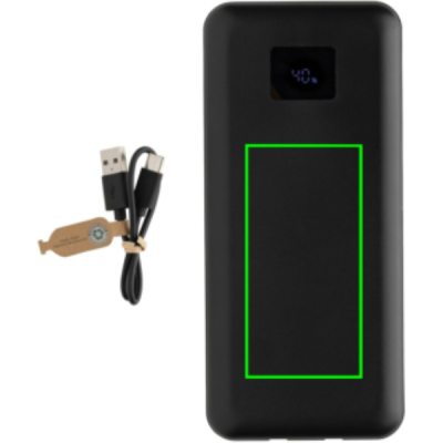Fed up with the constant search for outlets? Meet the 65W Supercharge Powerbank! 20.000 mAh 20W PD powerbank where the case is made out of RCS certified recycled ABS plastic. RCS (Recycled Claim Standard) is a standard to verify the recycled content of a product throughout the whole supply chain. Total recycled content: 13 % based on total item weight. Charge all your devices with ease thanks to its powerful 65W output and integrated Type C and iOS cables. Say goodbye to tangled cables and waiting for recharges—this powerbank supports lightning-fast 45W recharging via Type C, and supercharged charging with Type C (up to 65W) and USB A (up to 22.5W). Whether you are a busy professional, a student on the go, or an adventurer, this powerbank is your ultimate companion. Do not miss out on the opportunity to revolutionize your charging experience. Say goodbye to low battery anxiety and hello to reliable, lightning-fast charging with the 65W Supercharge Powerbank. With LED screen.
