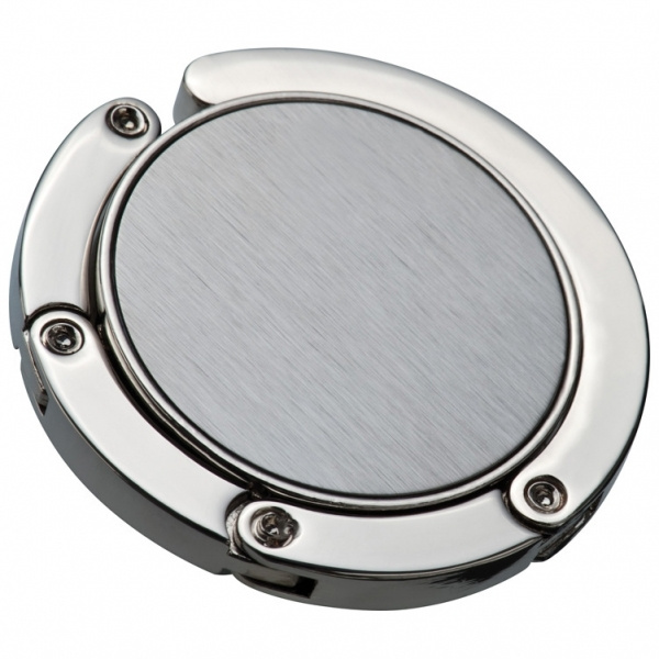 A perfect accessory for every woman! Keep your handbags off the dirty ground with the elegant handbag holder. We suggest to laser engrave your logo onto the silver circular design. Single packed in a cardboard box.