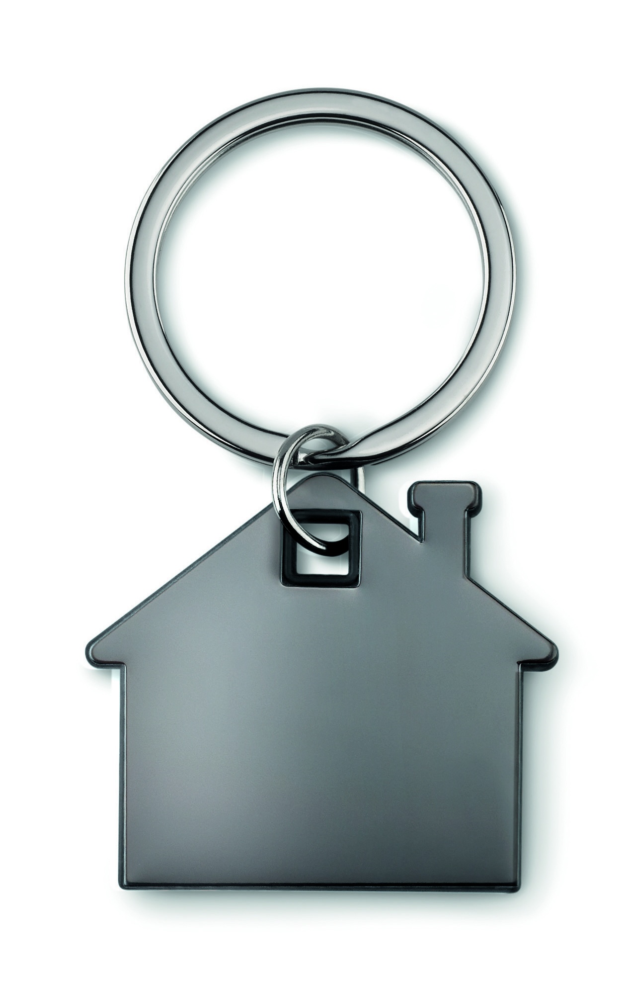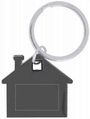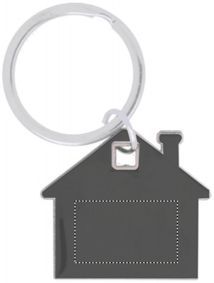 House shaped stainless steel and ABS plastic key ring.