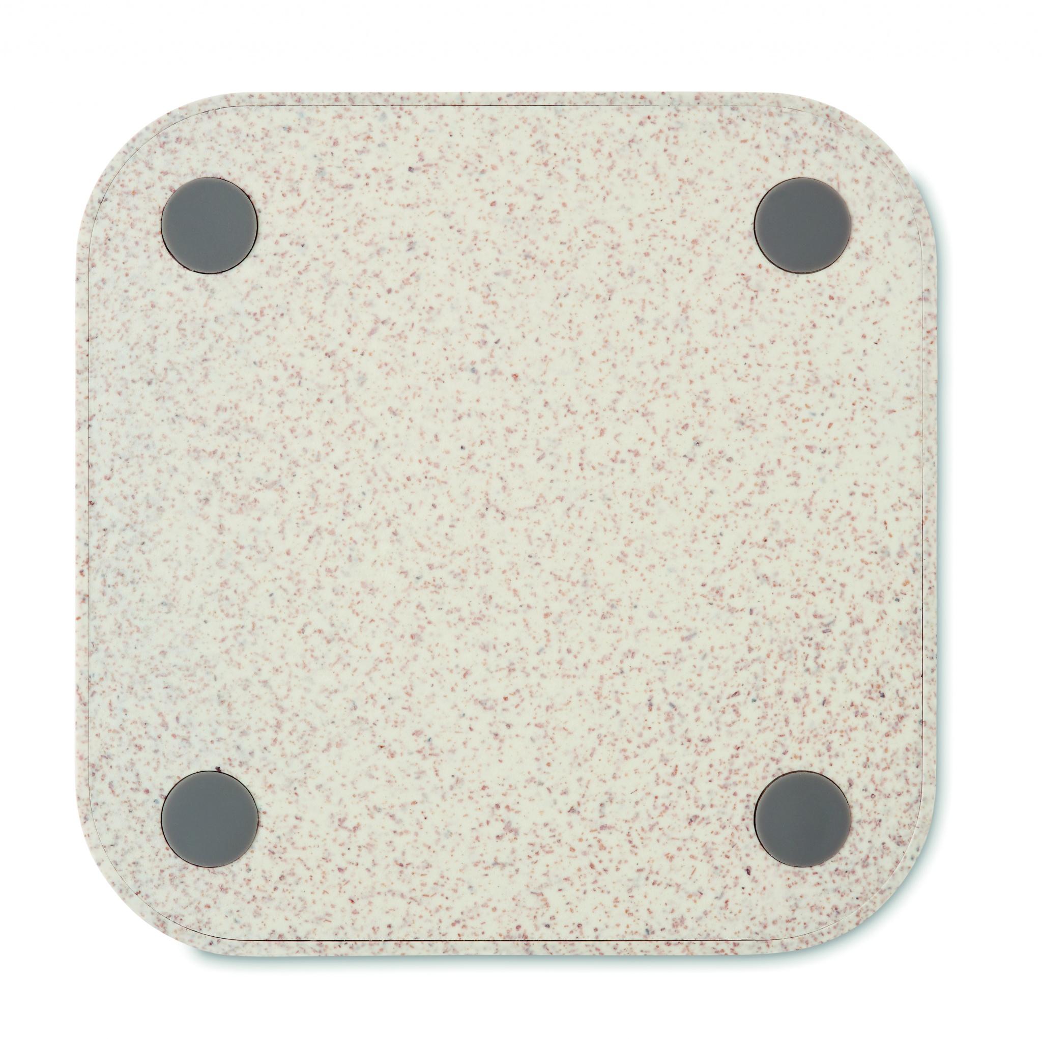 Wireless charging pad in wheat straw (35%) and ABS (65%) with 2 port 2.0 USB hubs. Output DC5V/1A (5W). Compatible latest androids, iPhone® 8, X and newer.