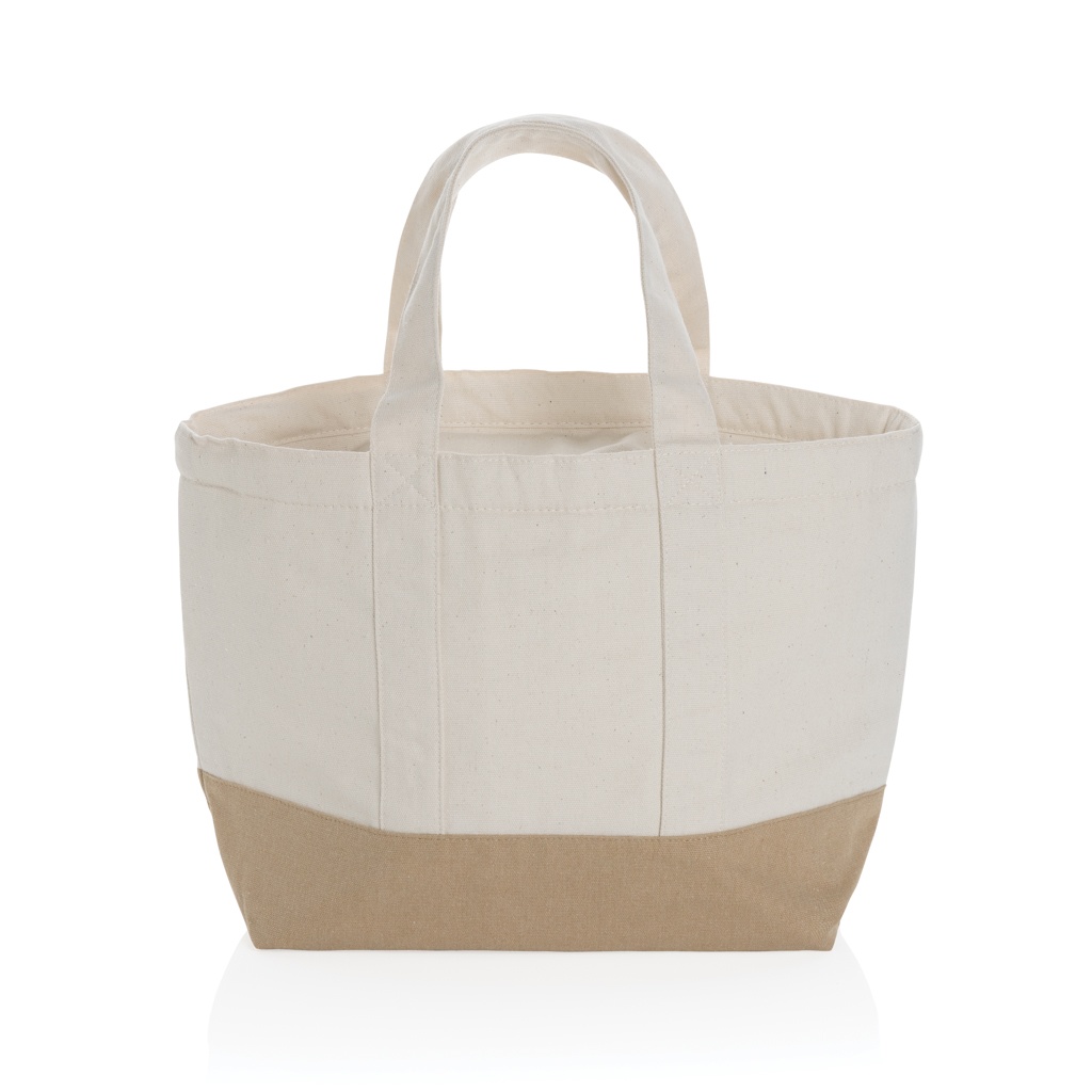 The Impact Aware™ 285 gsm recycled canvas small cooler bag keeps your favourite food and drinks cold, from picnics to road trips, then folds up flat to save on space. Fits up to 8 cans. With AWARE™ tracer that validates the genuine use of recycled materials. The recycled canvas is undyed and used in its raw form, without chemicals from dyeing or bleaching. 2% of proceeds of each Impact product sold will be donated to Water.org. Composition 70% recycled cotton, 30% recycled polyester; insulation silver foil.