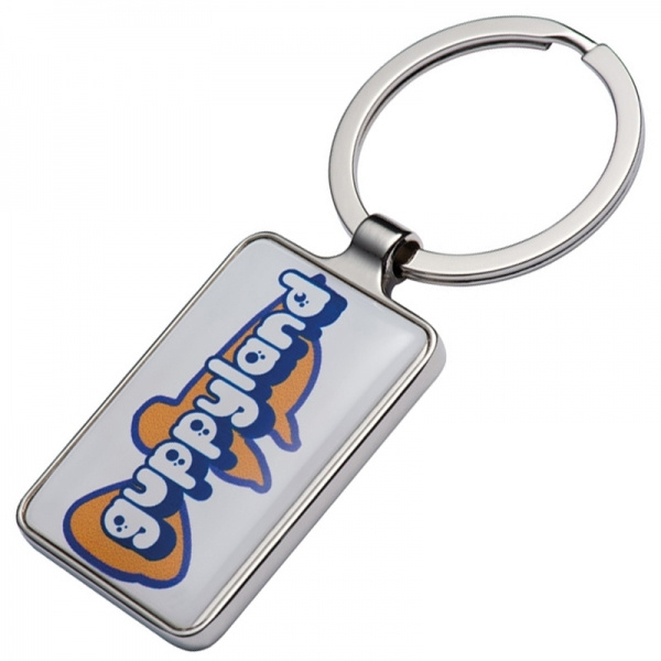 Rectangular! This metal key ring is perfect for your logo. Now you can choose how your logo should be made. Choose between a laser engraving and doming (CMYK). We will print your logo onto the key ring. Single packed in a cardboard box.