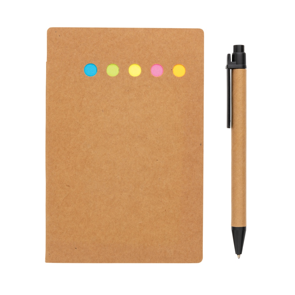 Logo trade business gifts image of: Kraft sticky notes A6 booklet with pen
