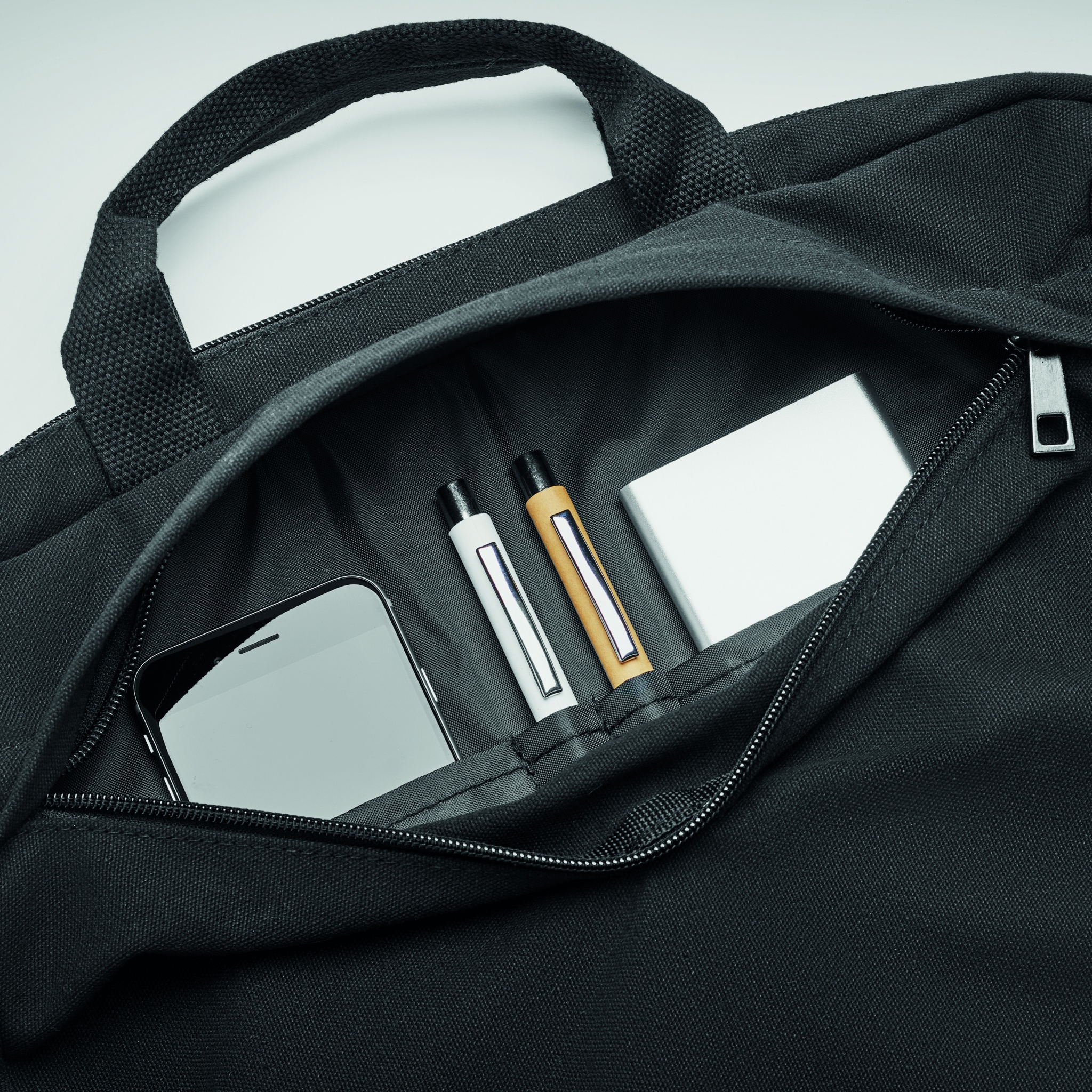 Laptop bag in washed canvas, Black