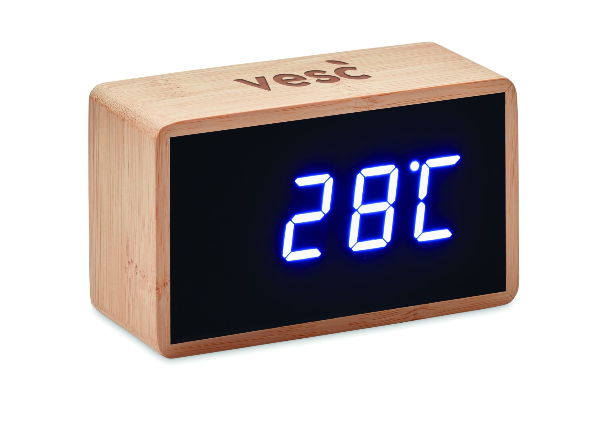 Logo trade corporate gifts picture of: LED alarm clock bamboo casing Düsseldorf