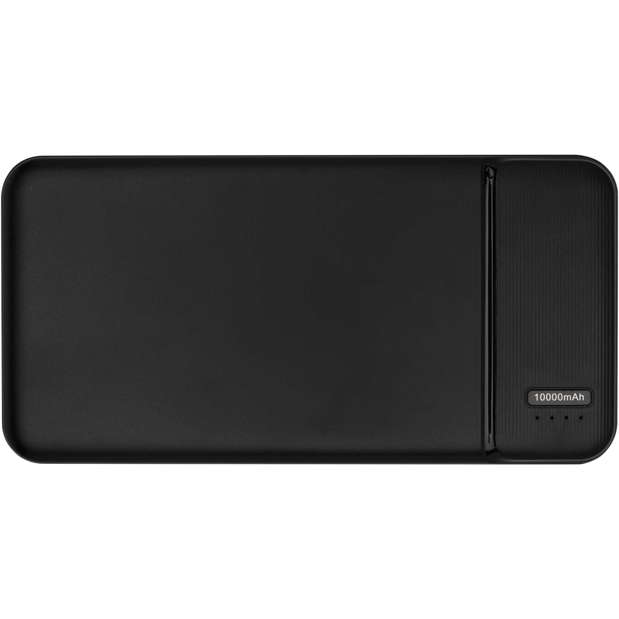 Power bank made of recycled ABS plastic. The power bank contains a long lasting grade A 10.000 mAh lithium polymer battery for fast charging. The power indicators will indicate the remaining energy level so you always know when to recharge. Type-C input 5V/2A, Micro USB input 5V/2A, dual USB-A output 5V/2A, total power 10W. Delivered with a 30 cm TPE 2A USB-A to Type-C charging cable, an instruction manual and a kraft paper gift box.