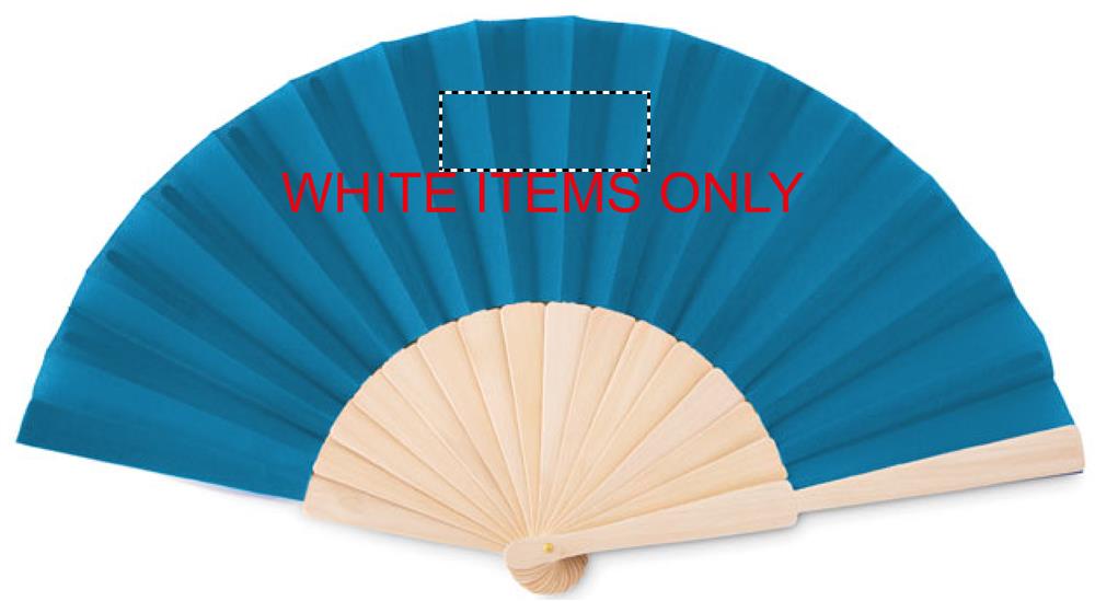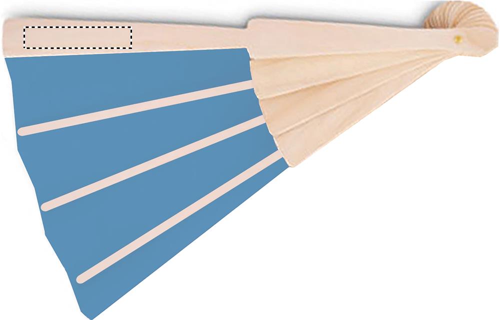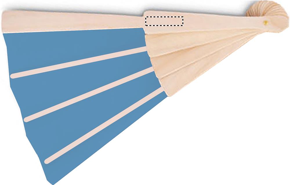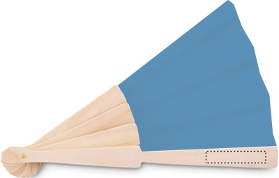Manual hand fan in wood with polyester fabric.