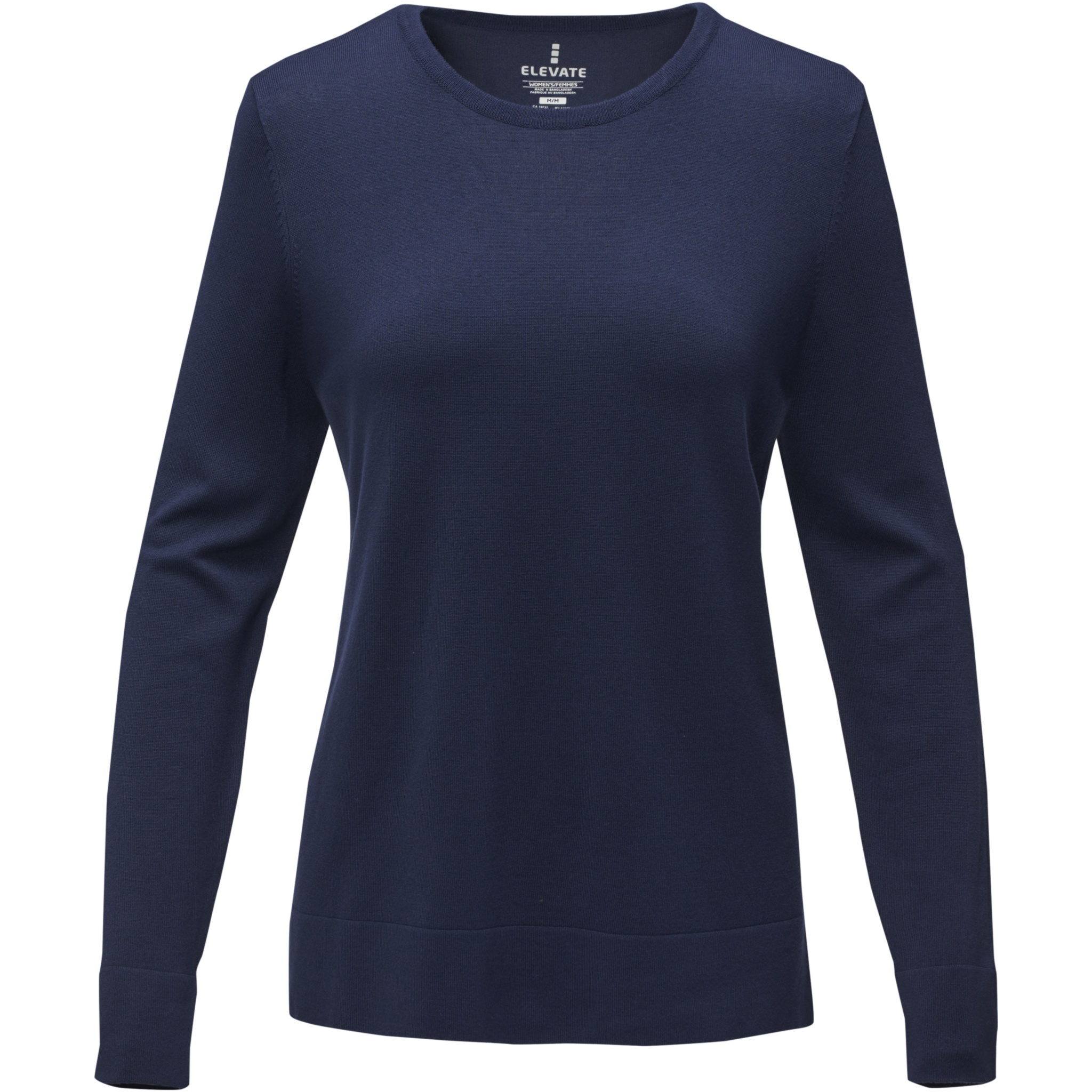 The Merrit women's crewneck pullover – a fusion of timeless style and comfort. Its classic crew neck is complemented by flat knit rib details on the collar, cuffs, and bottom hem, providing a sophisticated charm suitable for any occasion. Made from viscose and nylon blend in a 12-gauge flat knit, it offers a blend of softness, durability, and a lightweight feel. Elevate your wardrobe with the versatile Merrit pullover that embodies elegance and quality. This pullover is designed with a fitted shape for a feminine look.