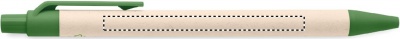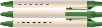 Push button ball pen with recycled milk cartons barrel (70 % recycled milk carton and 30% recycled paper) and PLA parts (in 100% biodegradable corn). Blue ink.