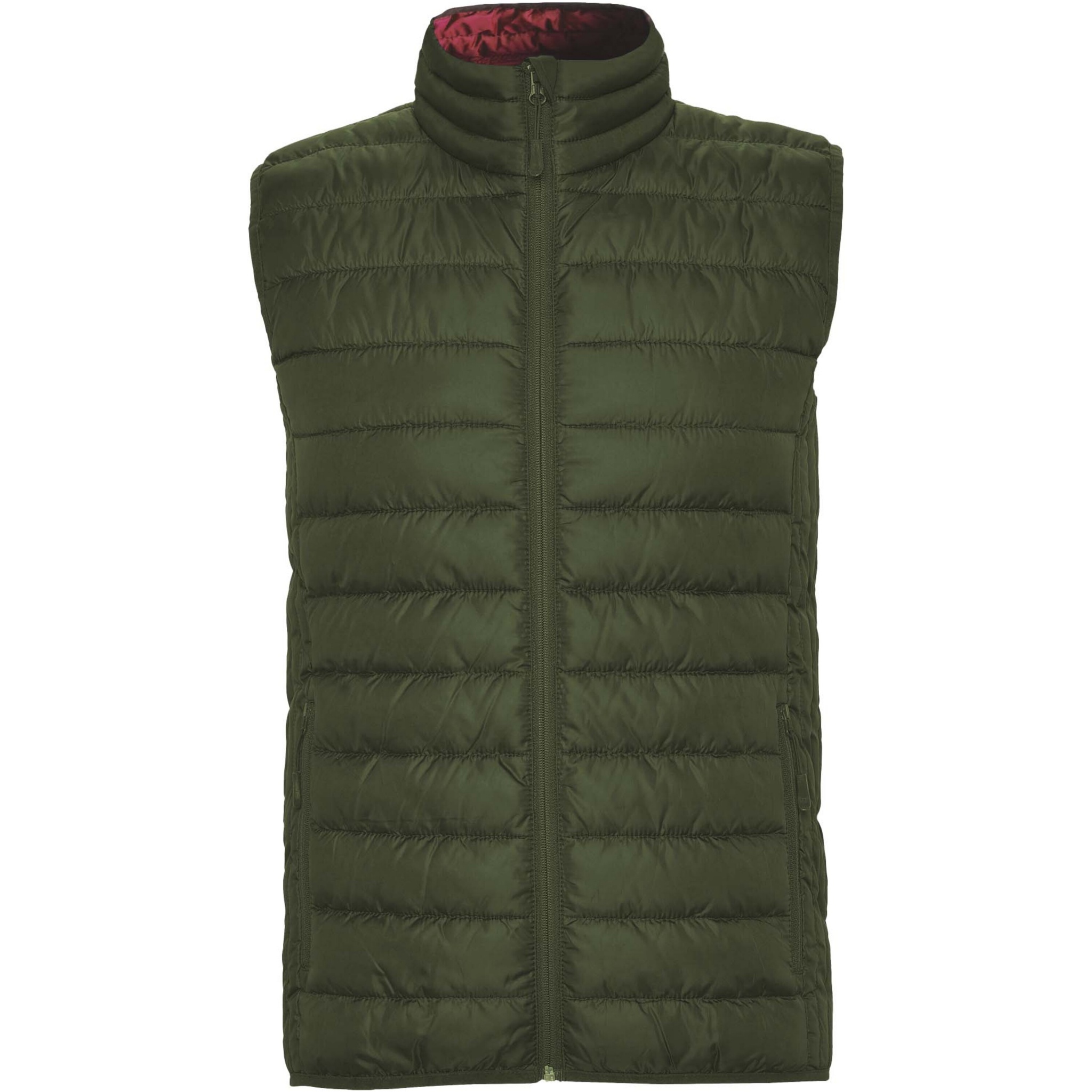Feather touch gilet vest for men. Matching inverted zips. Two front pockets with zip. Contrasting inner lining. Matching elastic trim in hem. Stow carry bag included. Light and foldable garment. Water resistant. Wind-proof model. The model is 185 cm and is wearing size M.