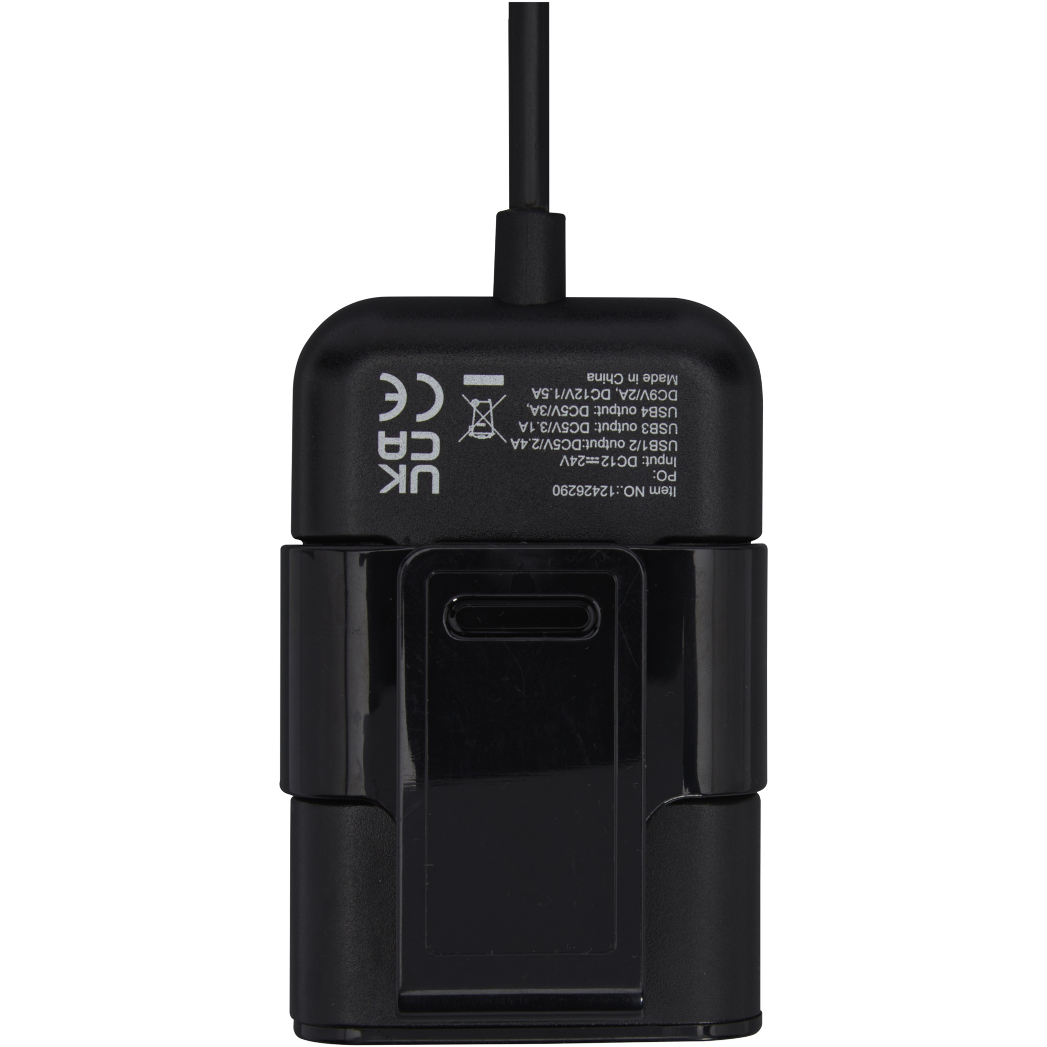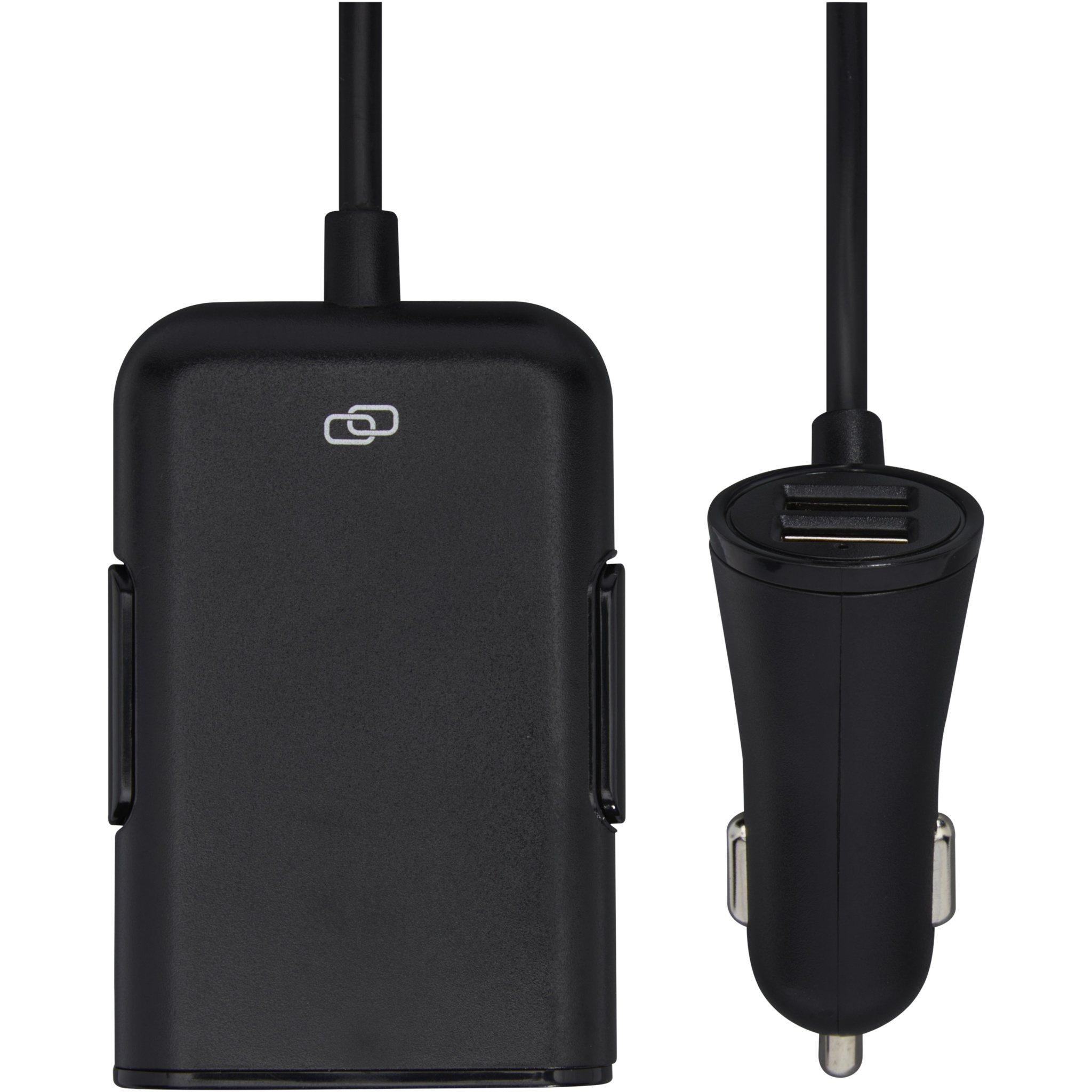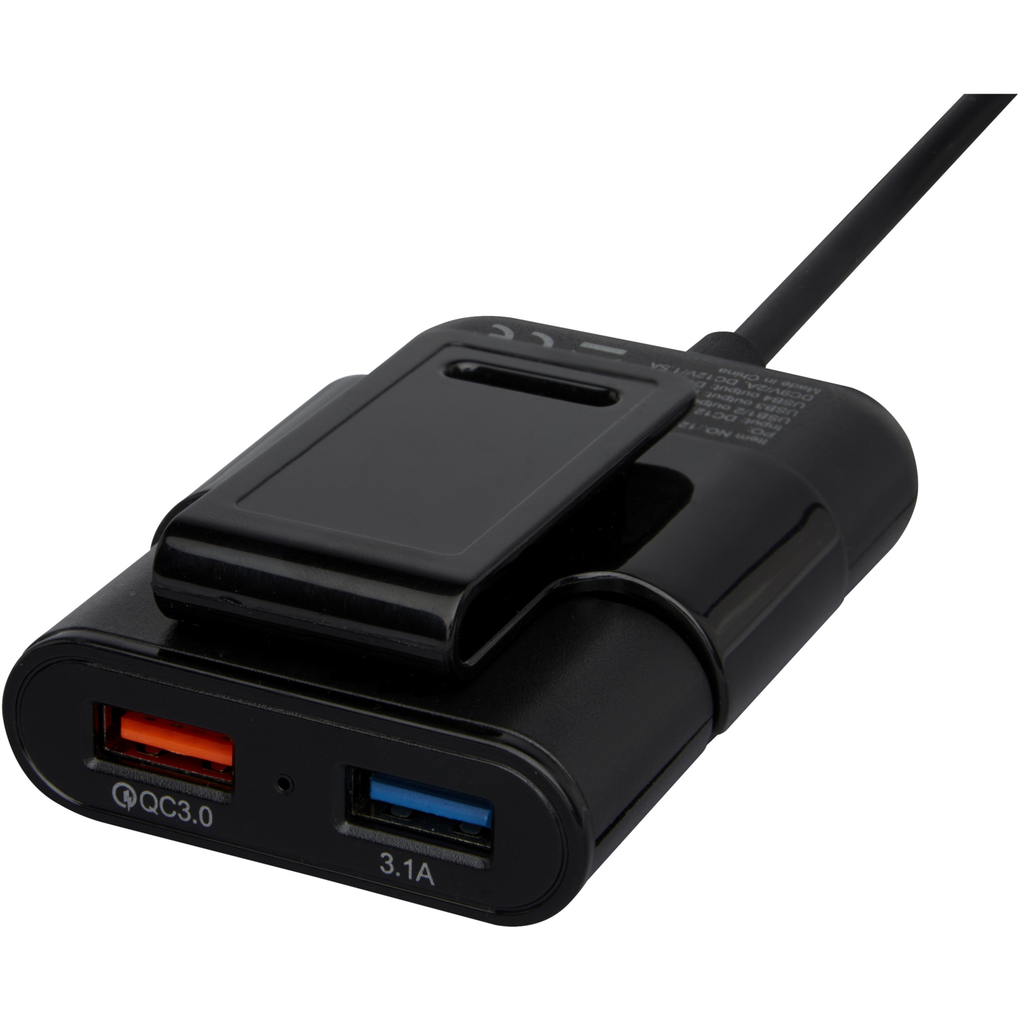 Pilot dual car charger with QC 3.0 dual back seat extended charger, Solid black