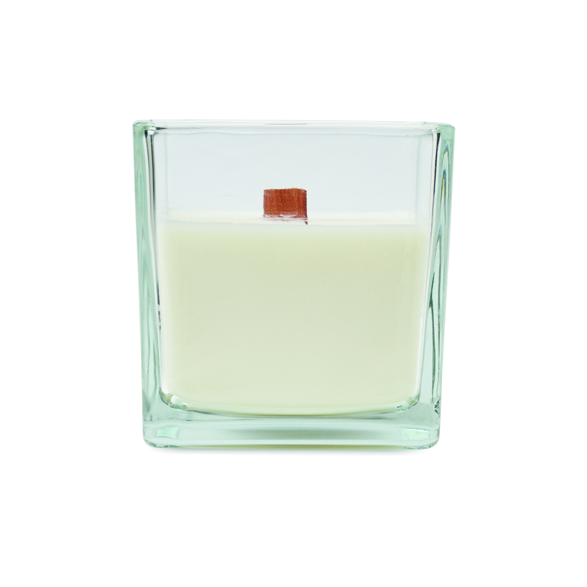 Large vanilla fragranced plant based wax candle 600gr in glass with wooden wick and beehive design on top. Burning time 65 hours