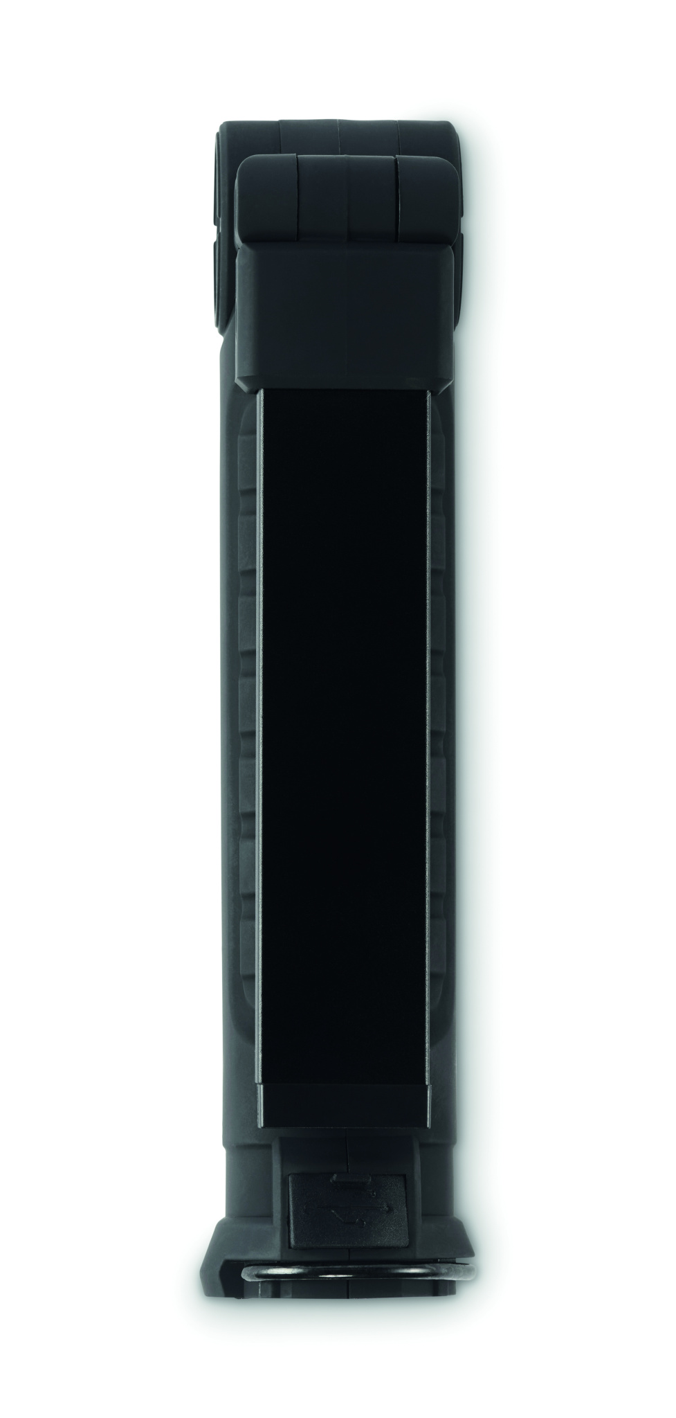 Aluminium rechargeable 1200mAh work light with 270° rotatable body. Features bright inspection light, side COB light with 2 settings, hanging hook and magnetic base. Charging cable included.