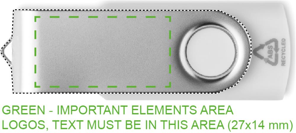 16GB USB 2.0 Flash Drive with protective recycled ABS casing. Rotate the metal cover and connect to USB port to start using it.