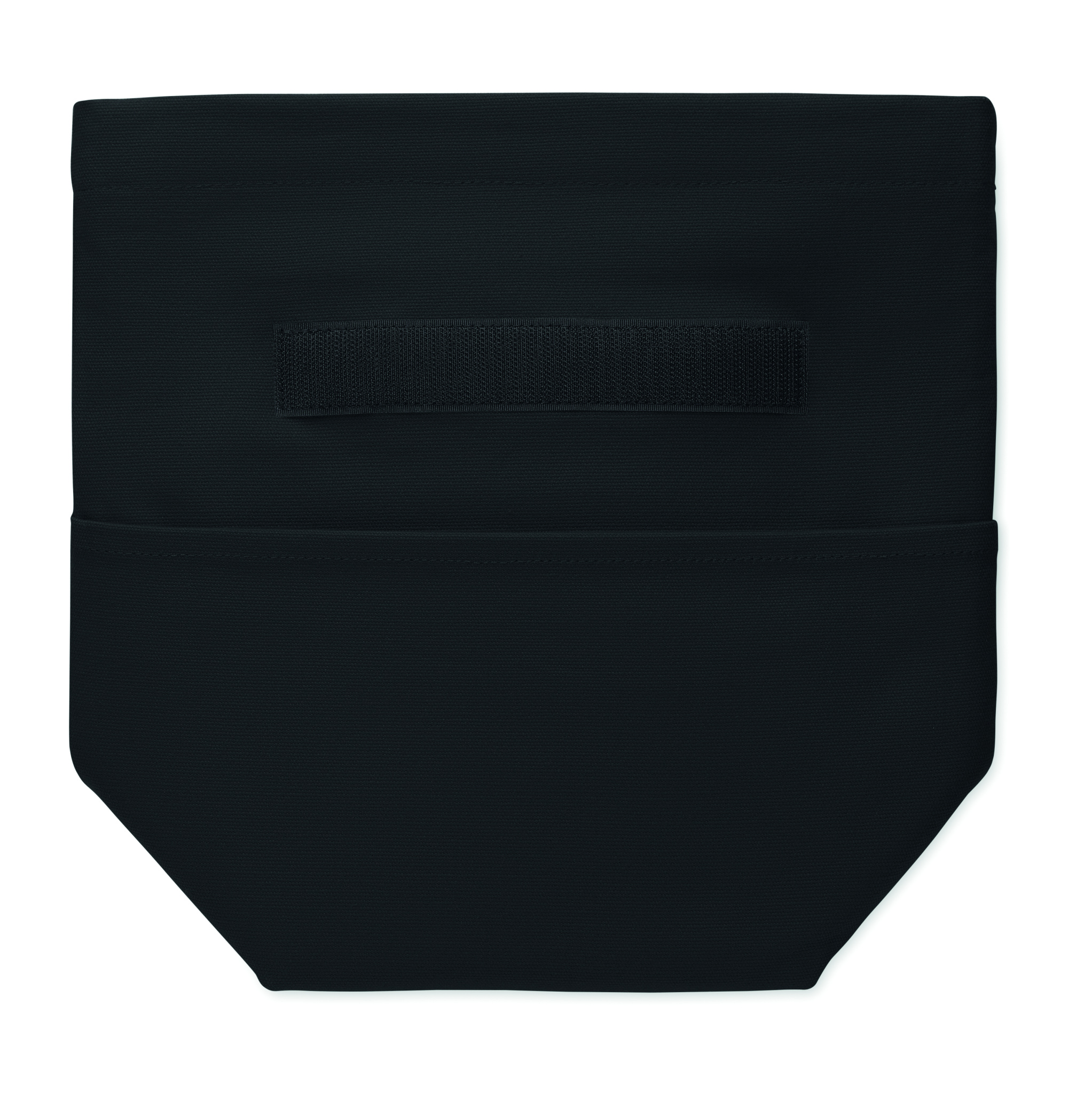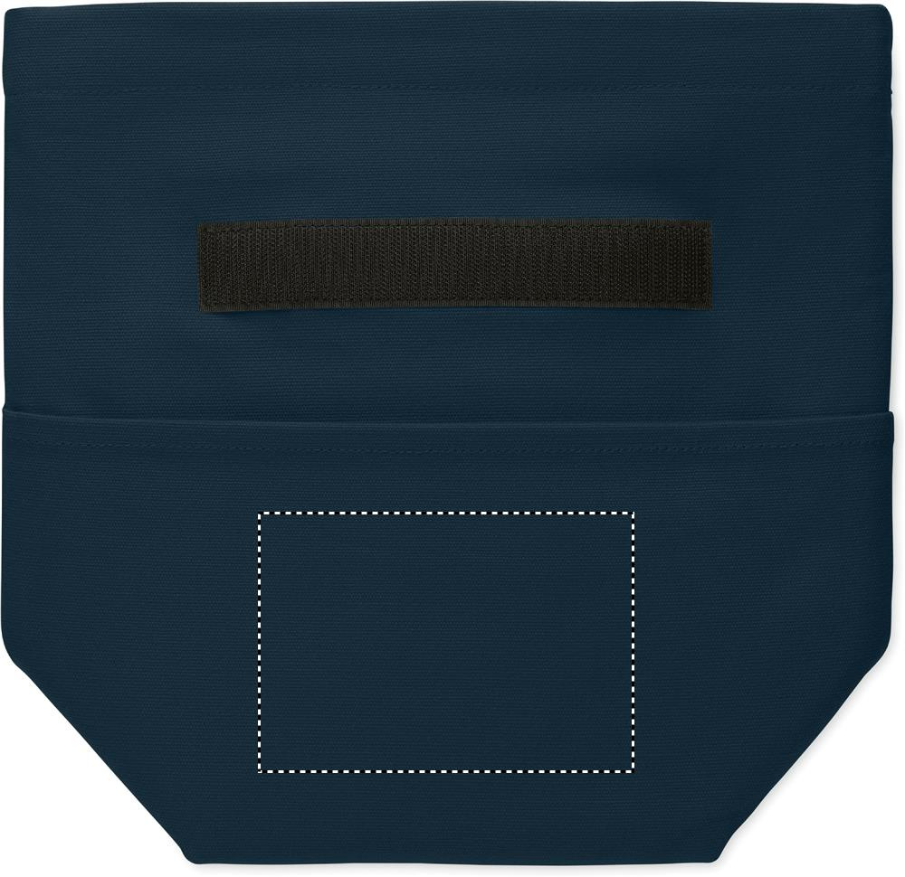 Recycled cotton (70% recycled cotton, 30% recycled polyester) insulated lunch cooler bag with rolltop hook and loop closure. Insulation: 3mm PE foam with 12C PEVA.