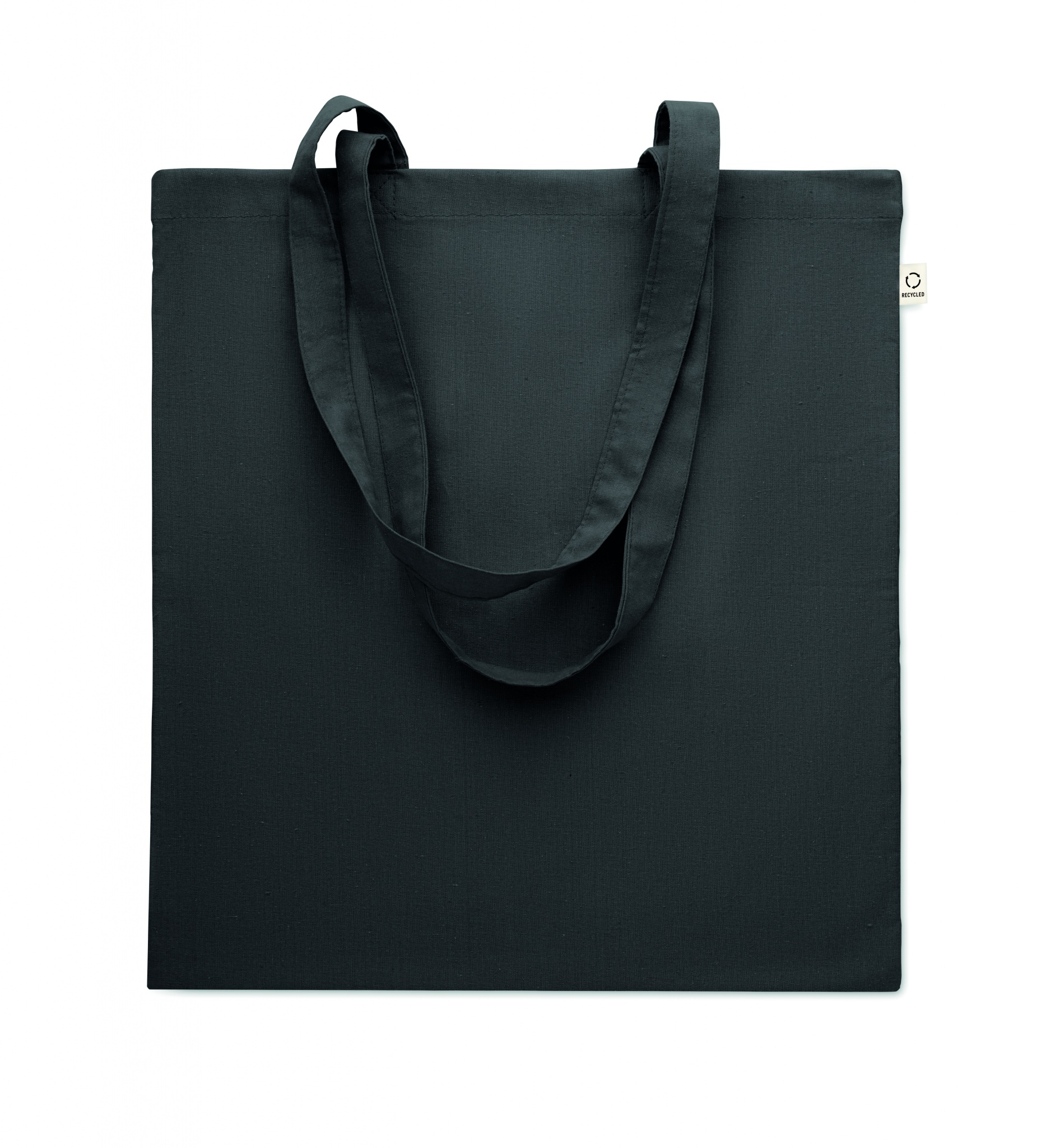 Recycled pre-consumer cotton shopping bag (70% recycled cotton and 30% RPET) with long handles. 140 gr/m².