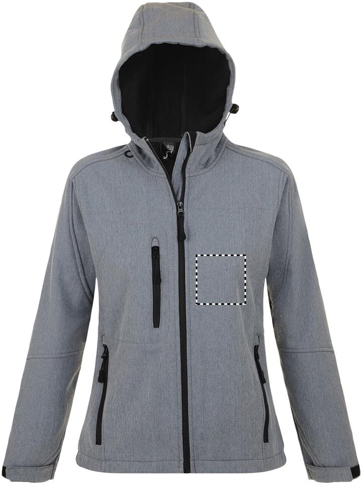 SOL'S REPLAY WOMEN, women's hooded softshell, 94% polyester - 6% elastane, fleece lining: 100% polyester, 3 layers, 8000 mm waterproof and breathable membrane softshell 340, 2 zipped side pockets and 1 zipped chest pocket, adjustable waist drawstring, adjustable cuffs with self-gripping fastener, hood with drawstring. About sizes matching, please refer to the size chart in the product documentation section.