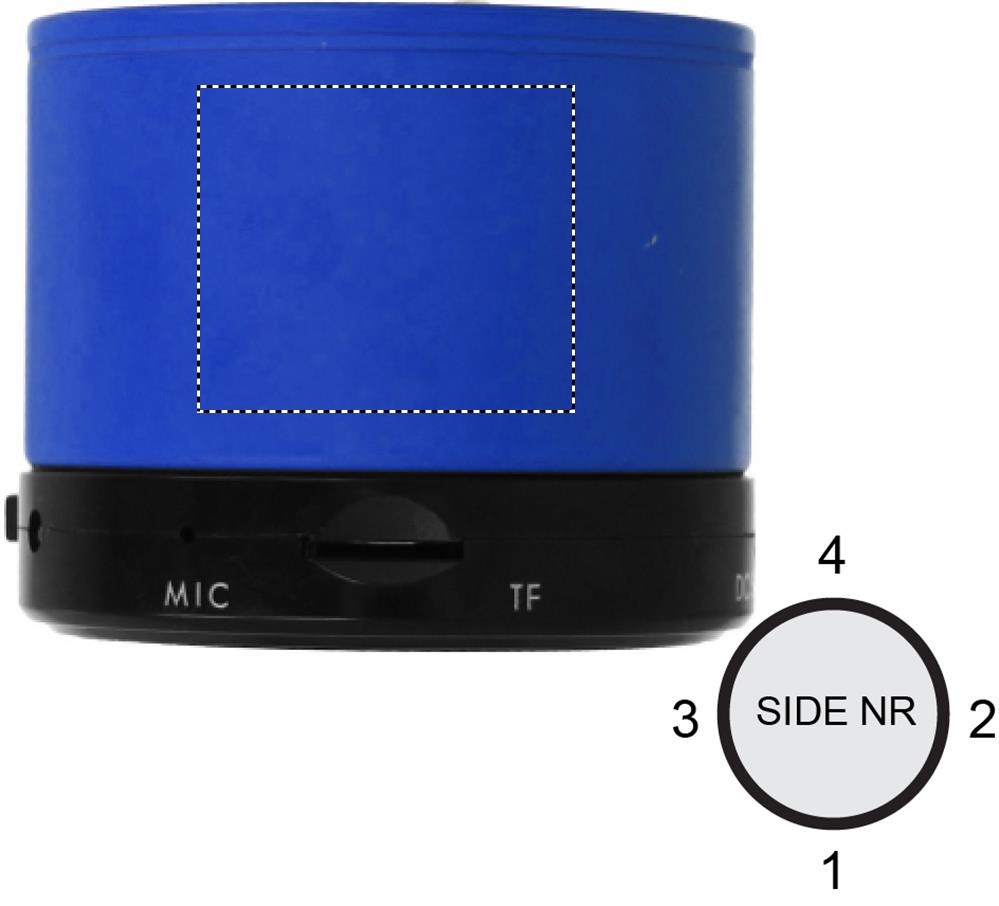 5.1 wireless speaker in ABS with rubber finish and LED light indication. 1 Rechargeable Lithium 450 mAh battery included. Includes an SD card port and an AUX / USB cable. Hands free call function. Output data: 3W, 3 Ohm and 5V. Playing time approx. 3h.